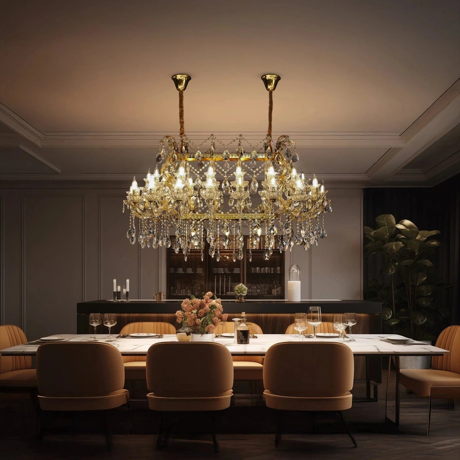 • Stately rectangular frame ensures even light spread across grand dining tables or lounges.