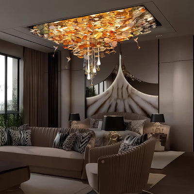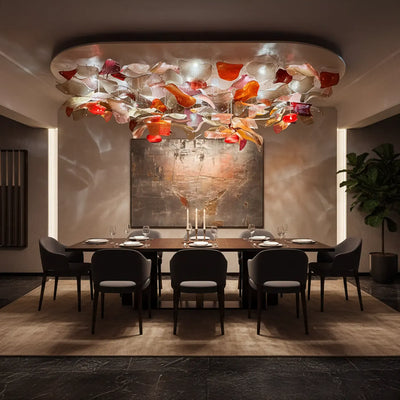 Gratus Luxe White Glass Leaf Oval Chandelier