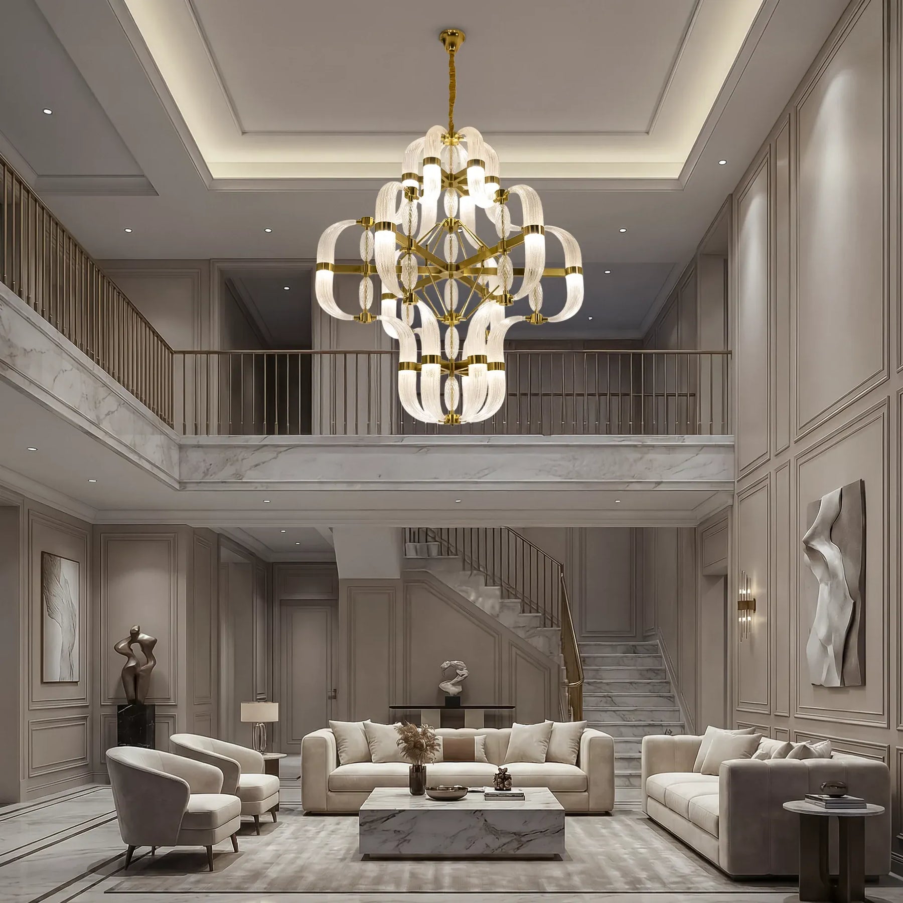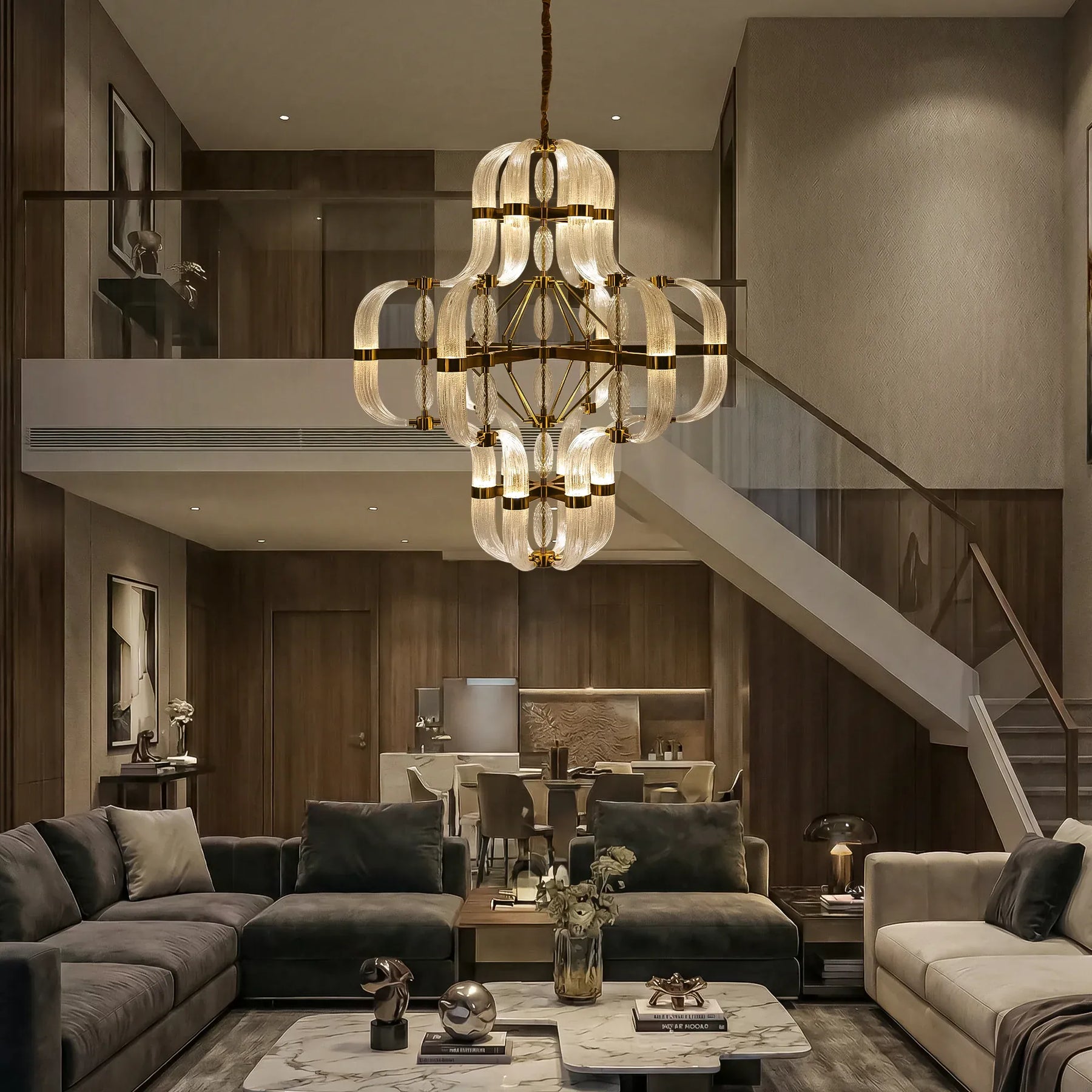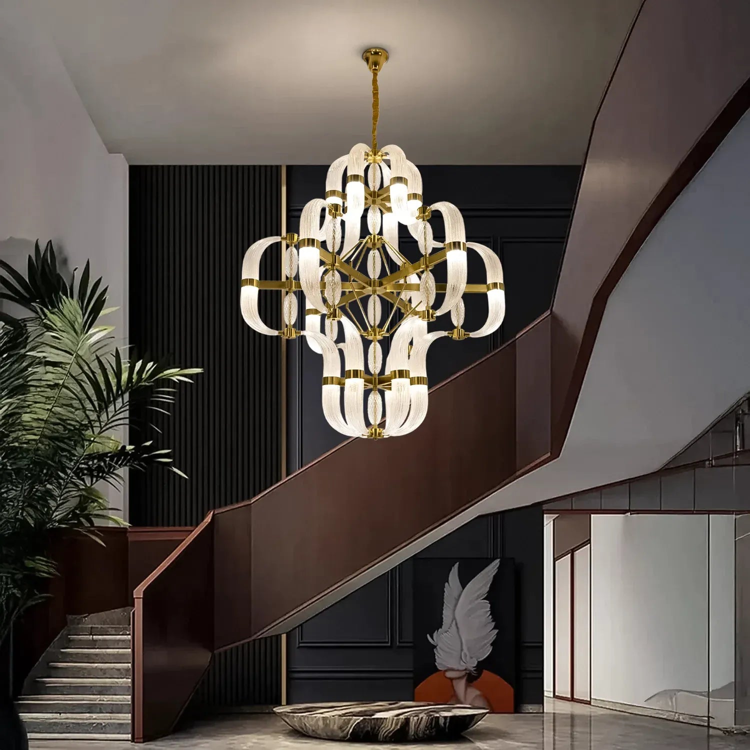 • Architectural Sculptural Form – Multi-layered curved glass arms form a stunning 3D silhouette, making the chandelier a statement centerpiece.