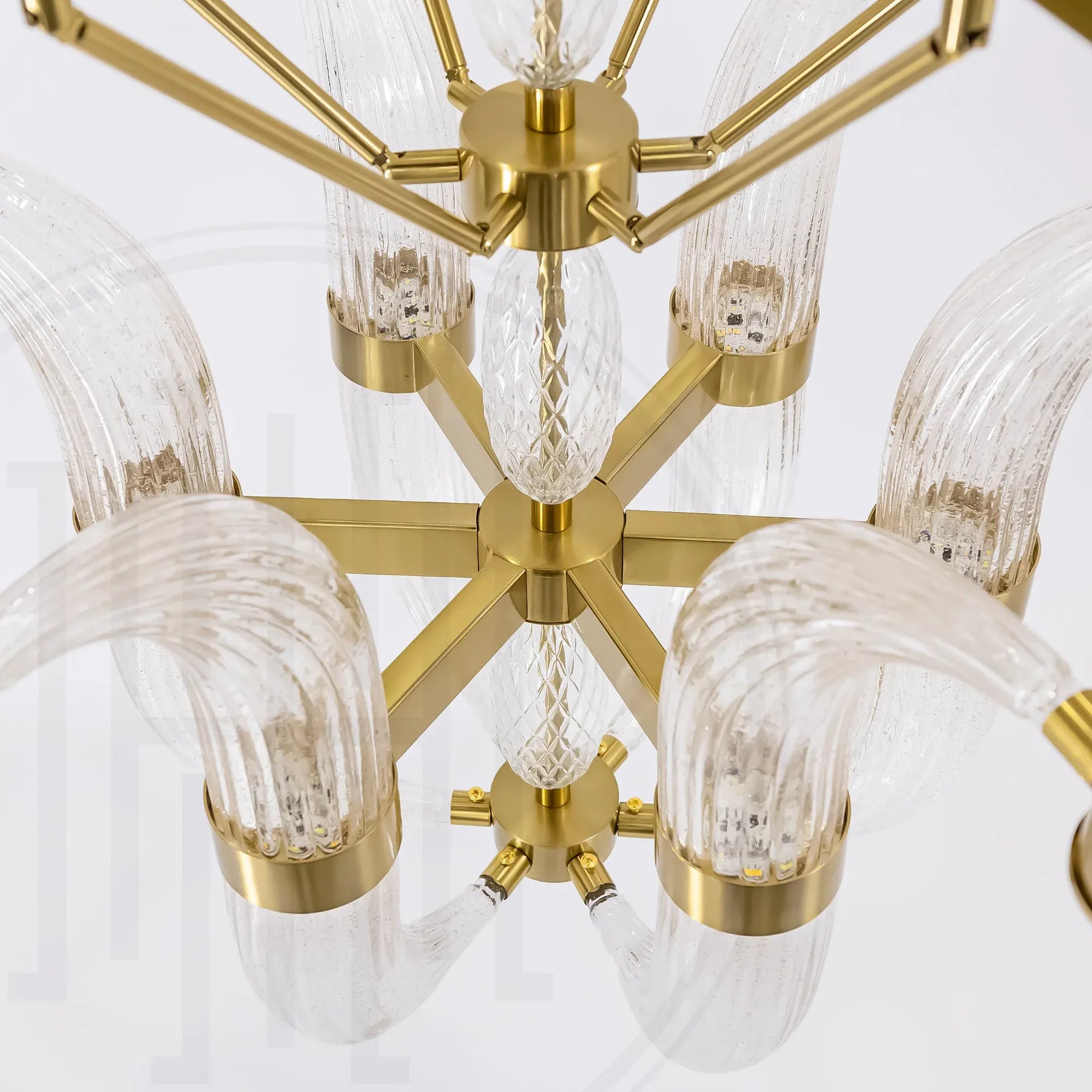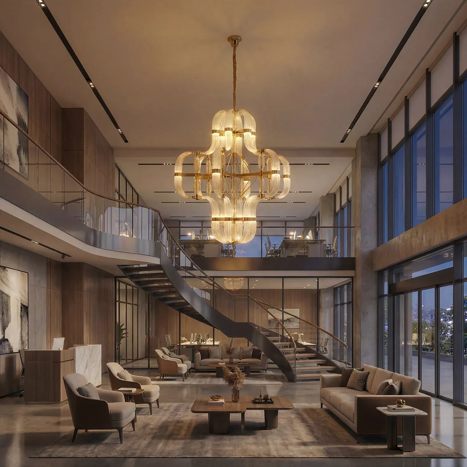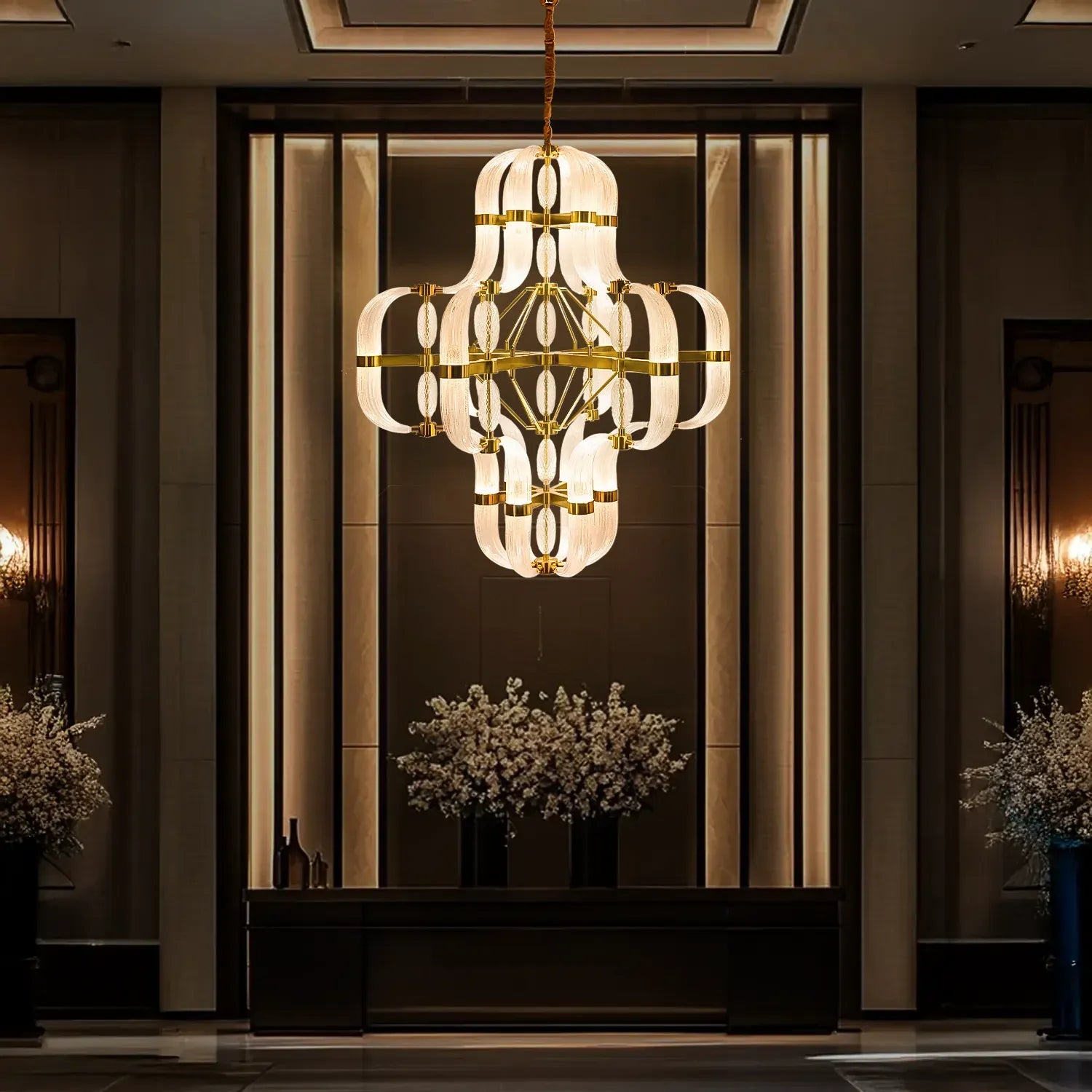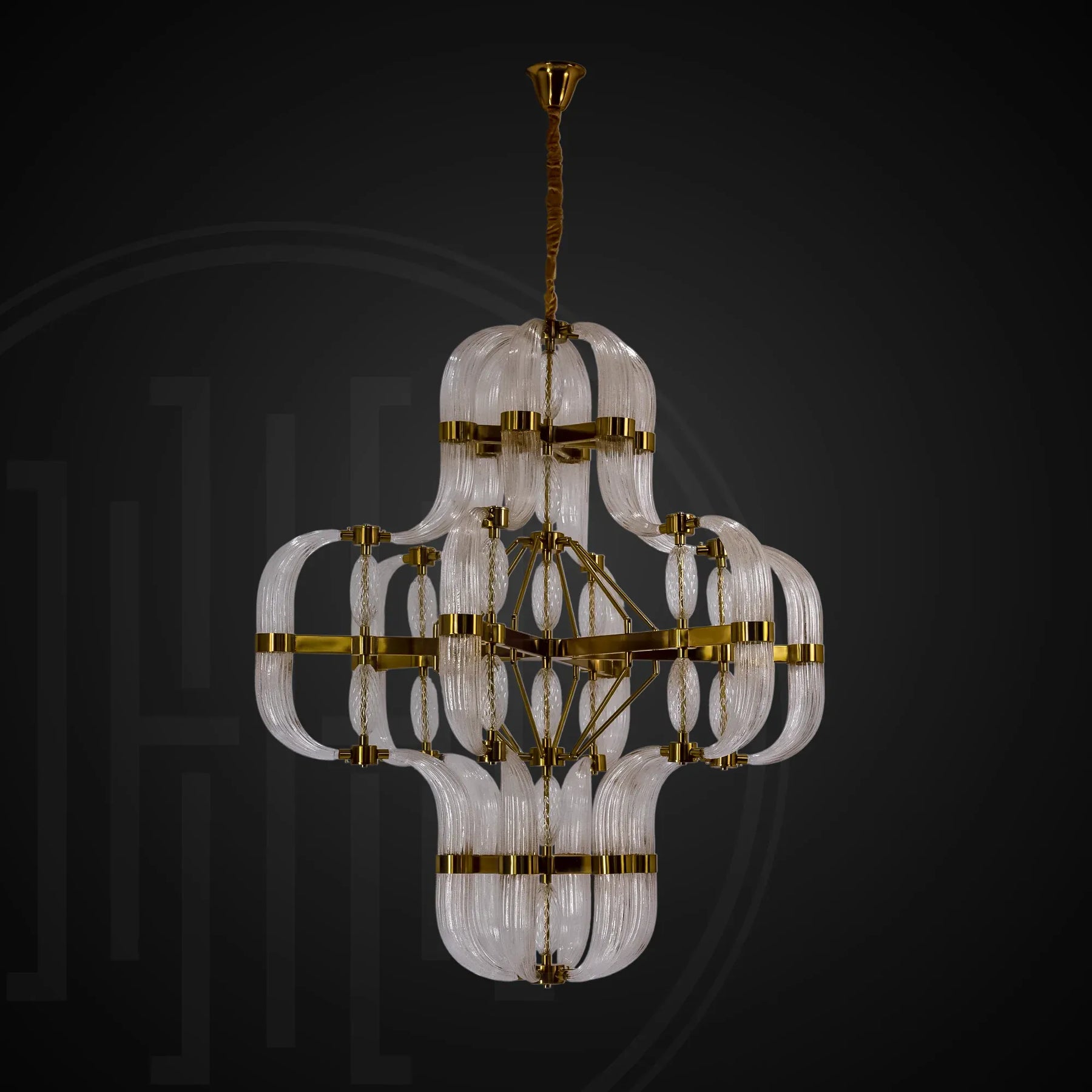 • Architectural Sculptural Form – Multi-layered curved glass arms form a stunning 3D silhouette, making the chandelier a statement centerpiece.