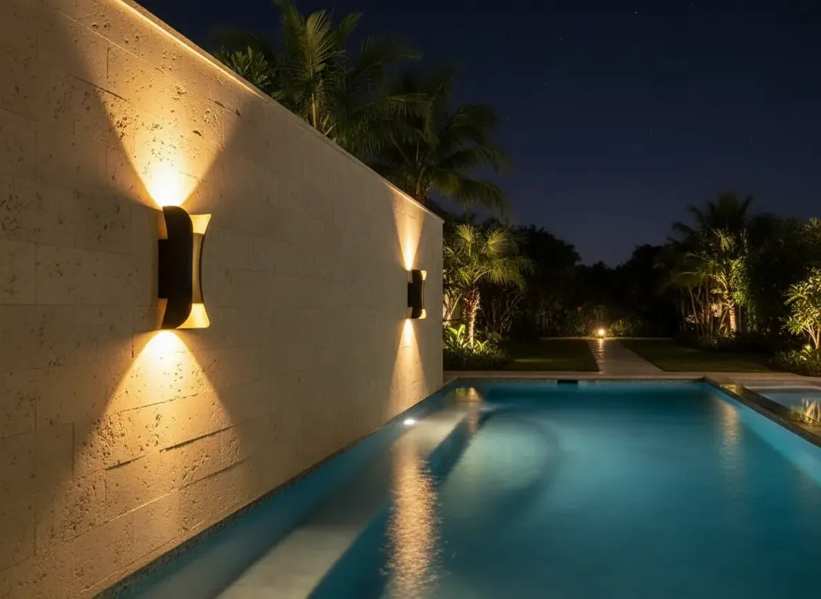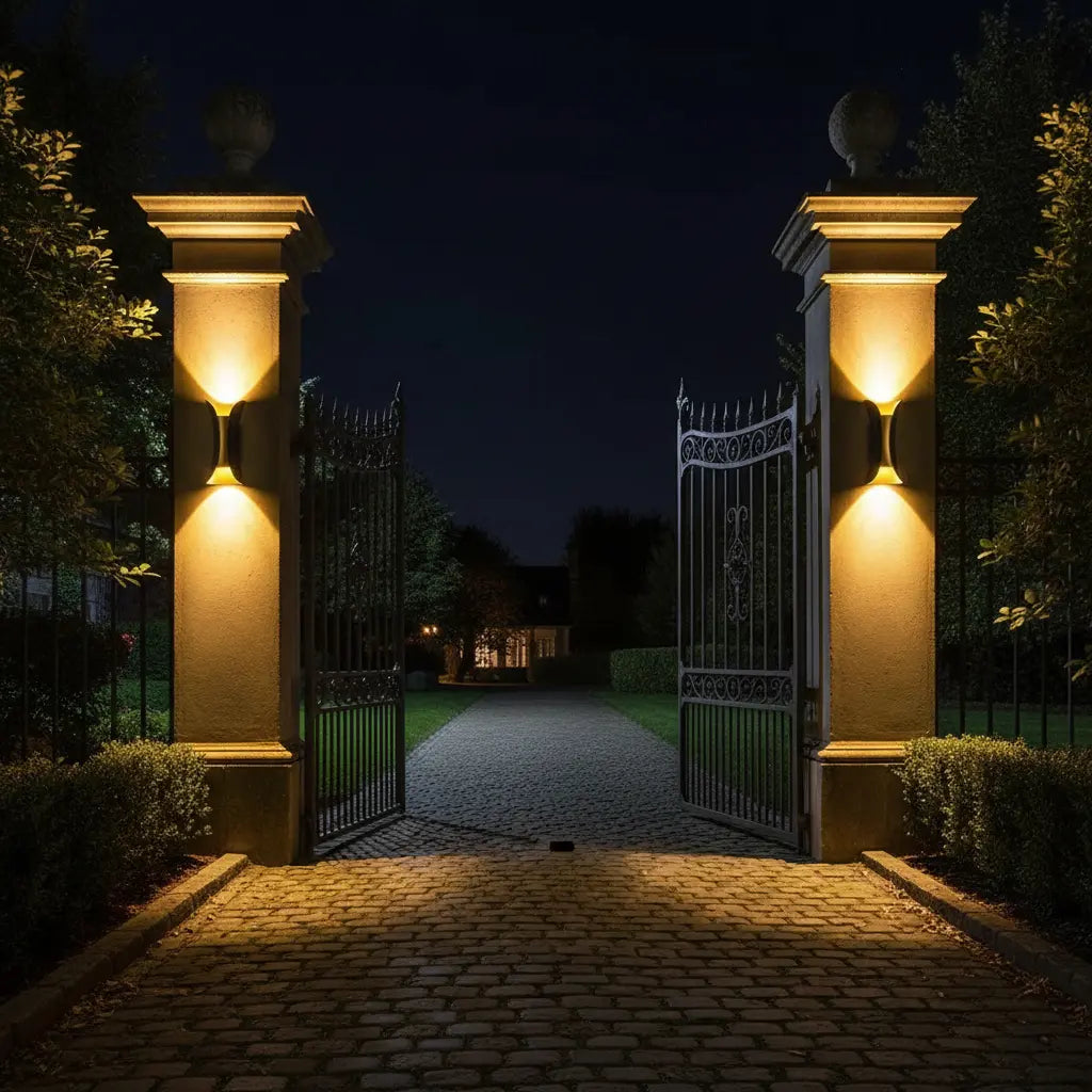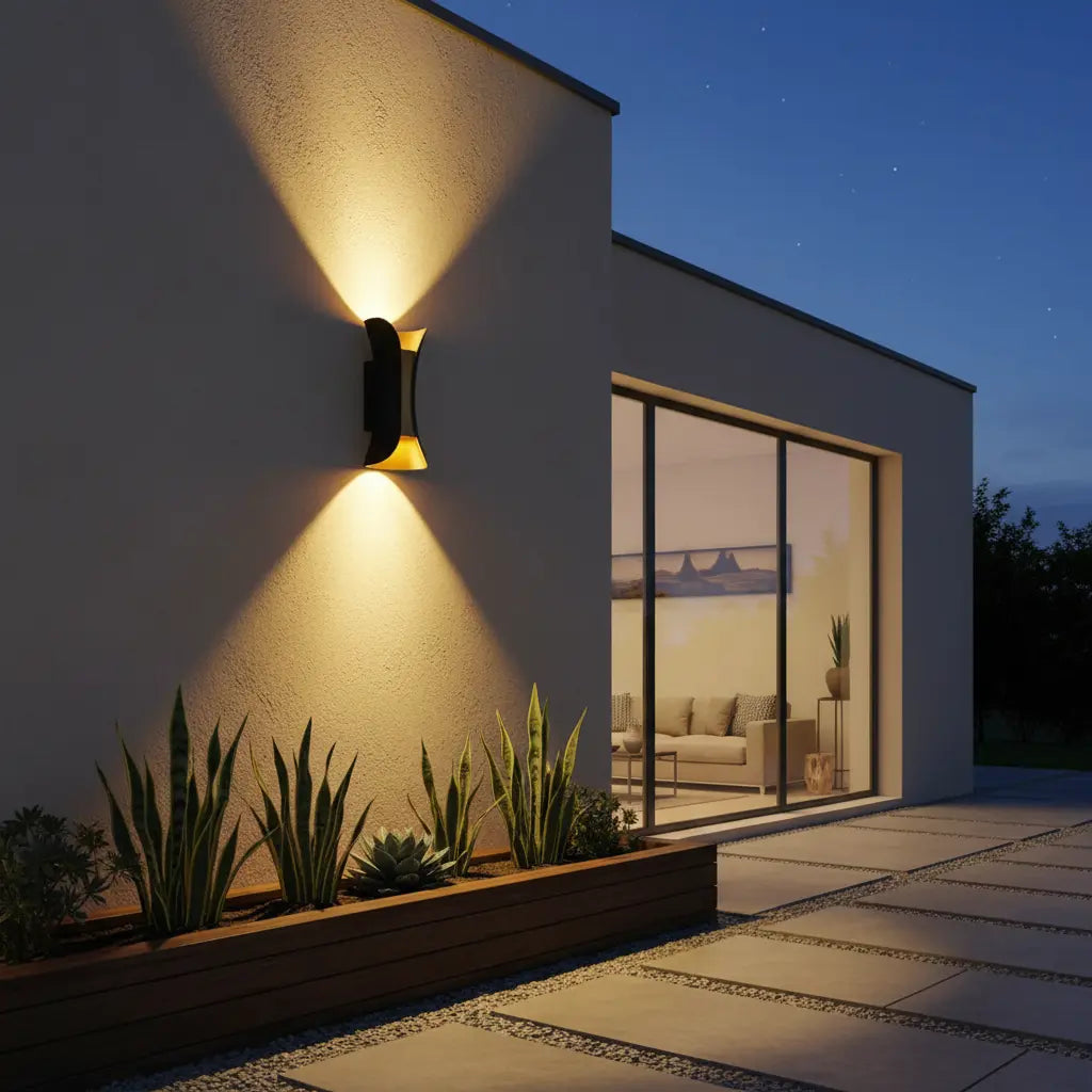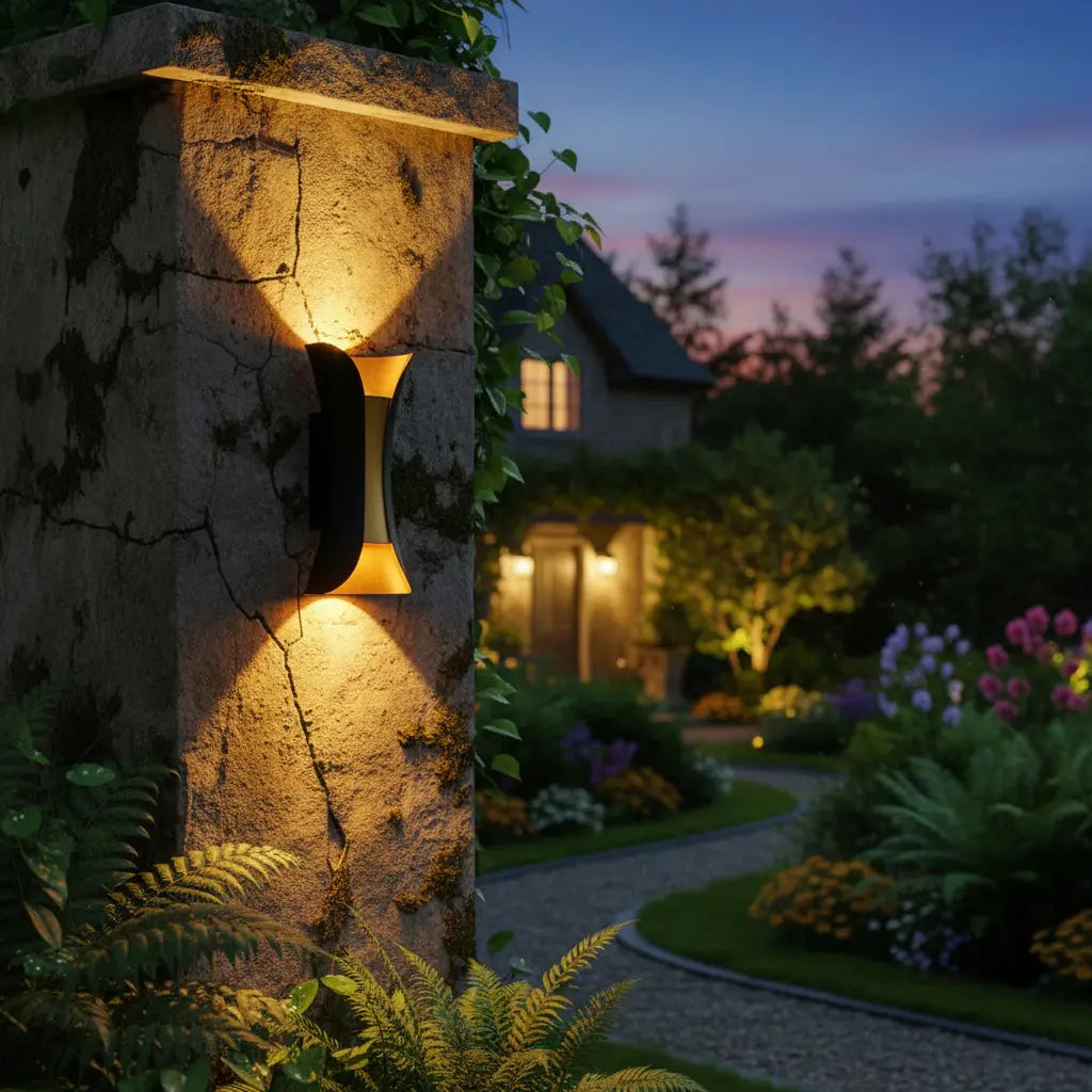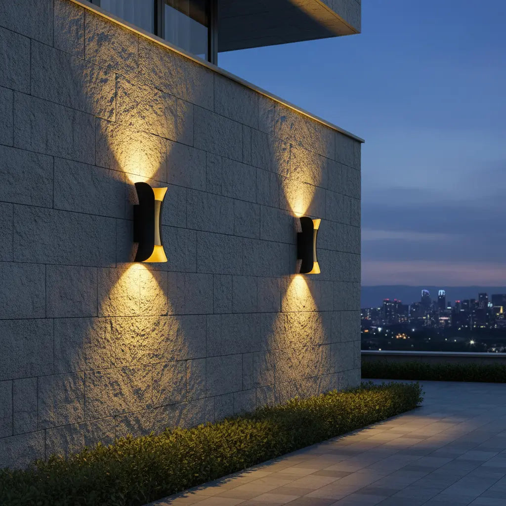 • Elegant outdoor wall light that enhances architectural features, textures, and boundary structures.