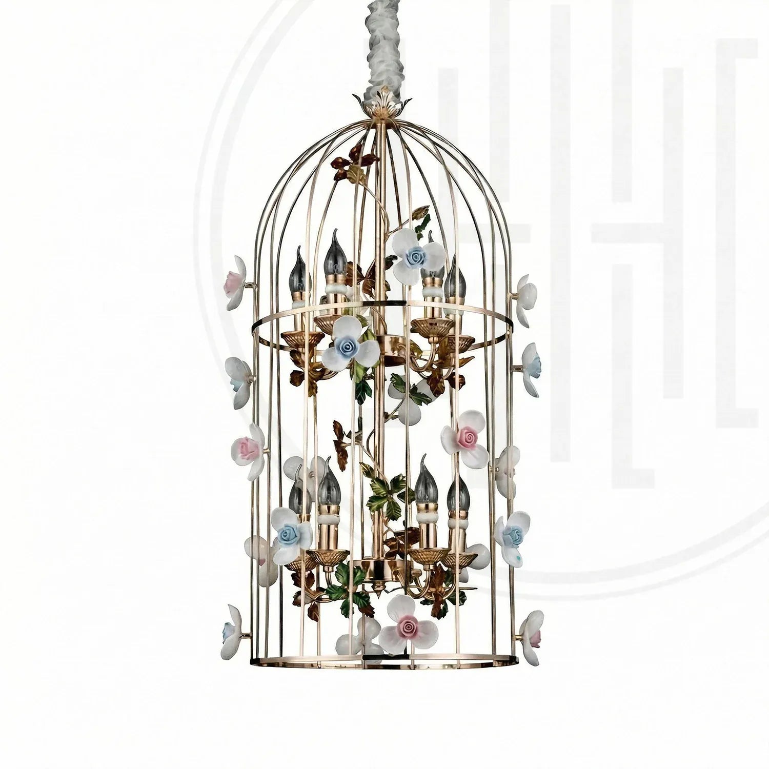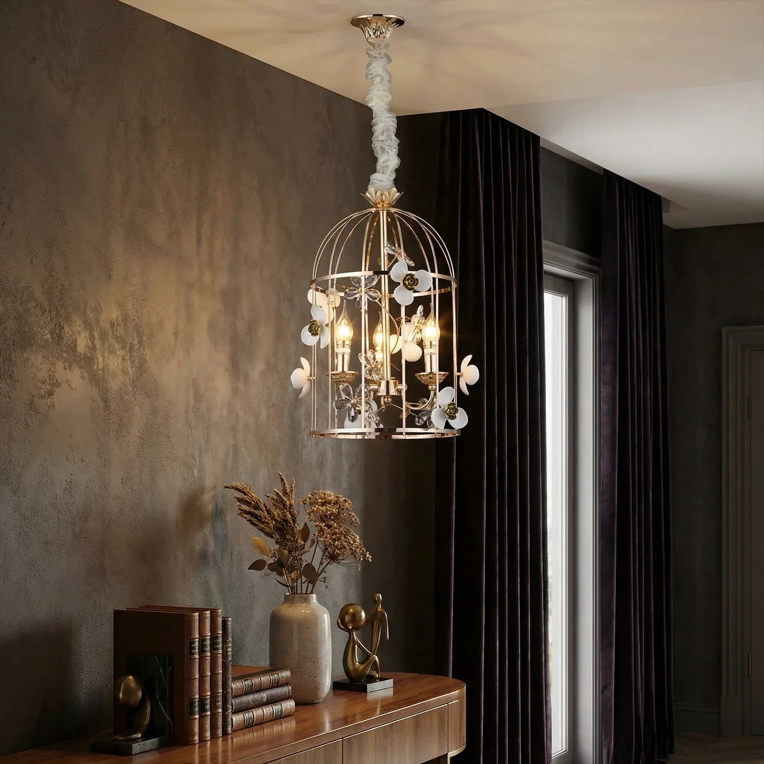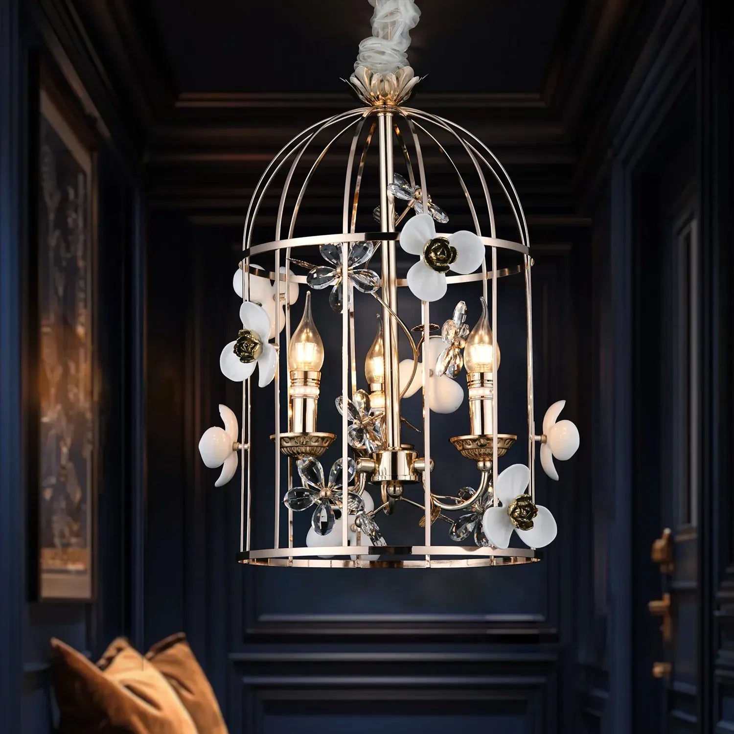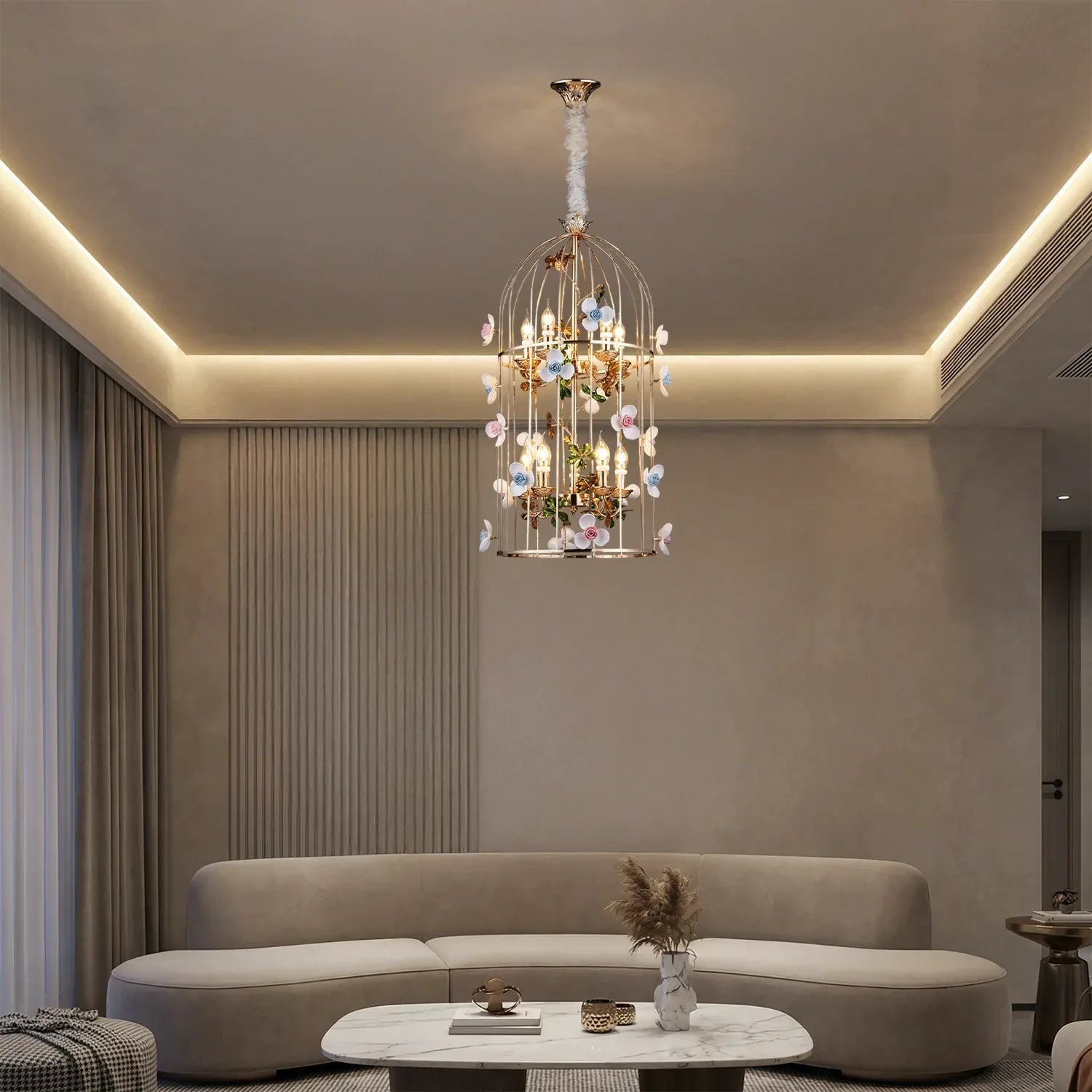 • Elegant birdcage-inspired silhouette that creates a grand statement in luxury interiors.