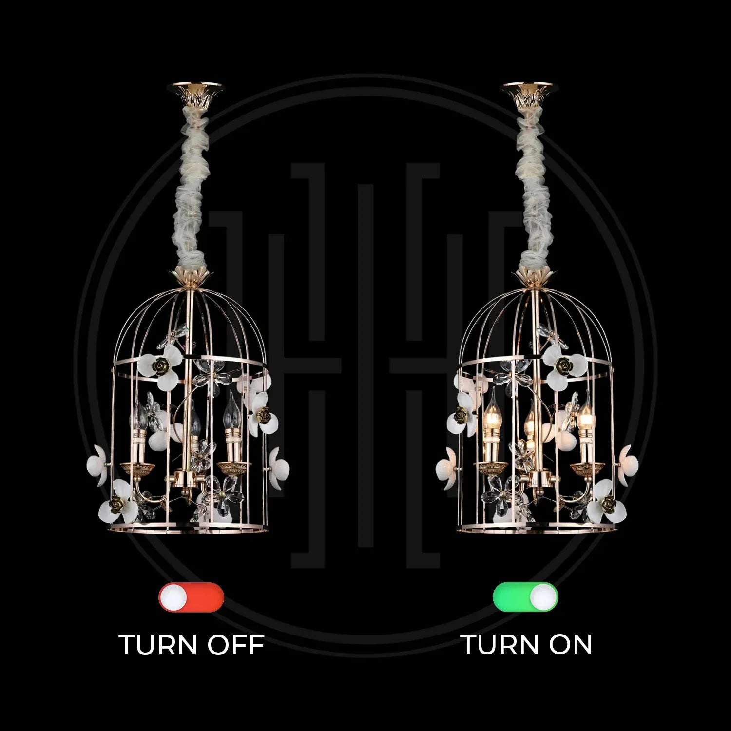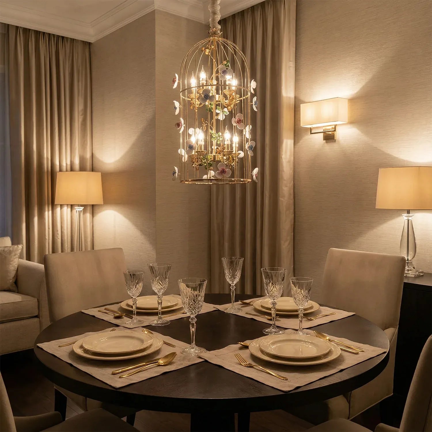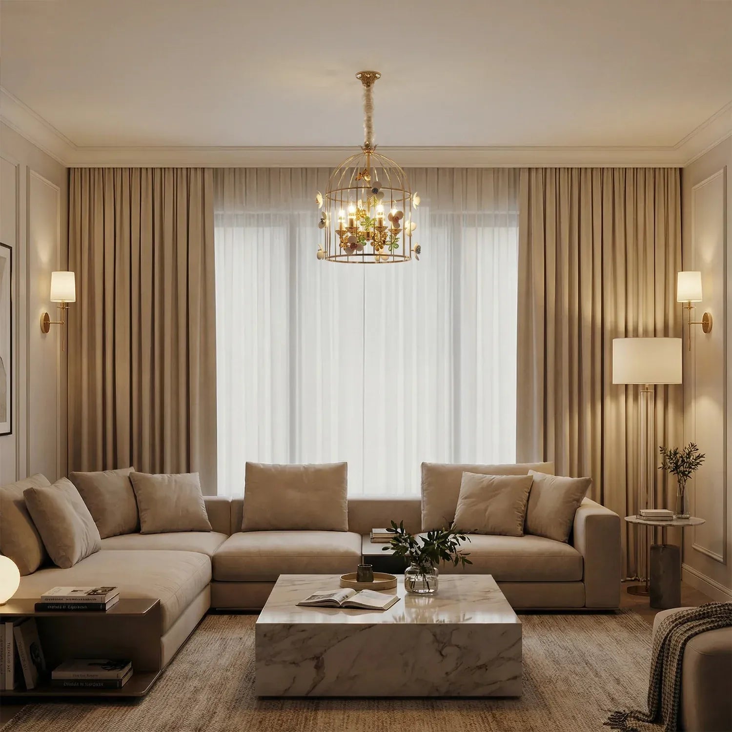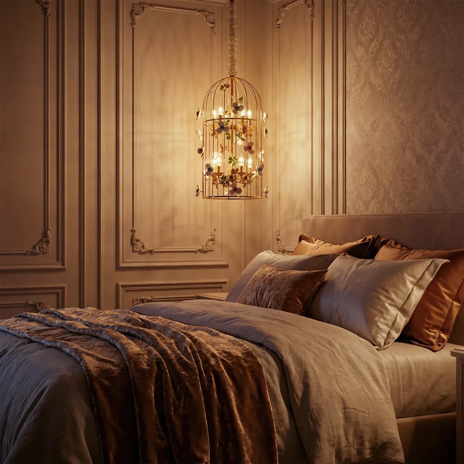 • Elegant birdcage-inspired silhouette that creates a grand statement in luxury interiors.
