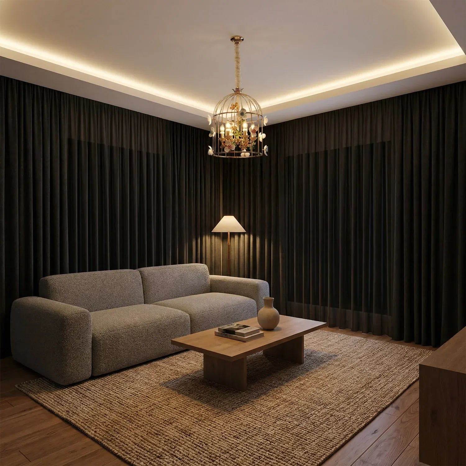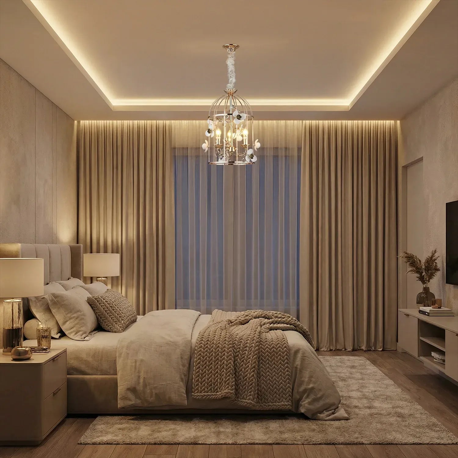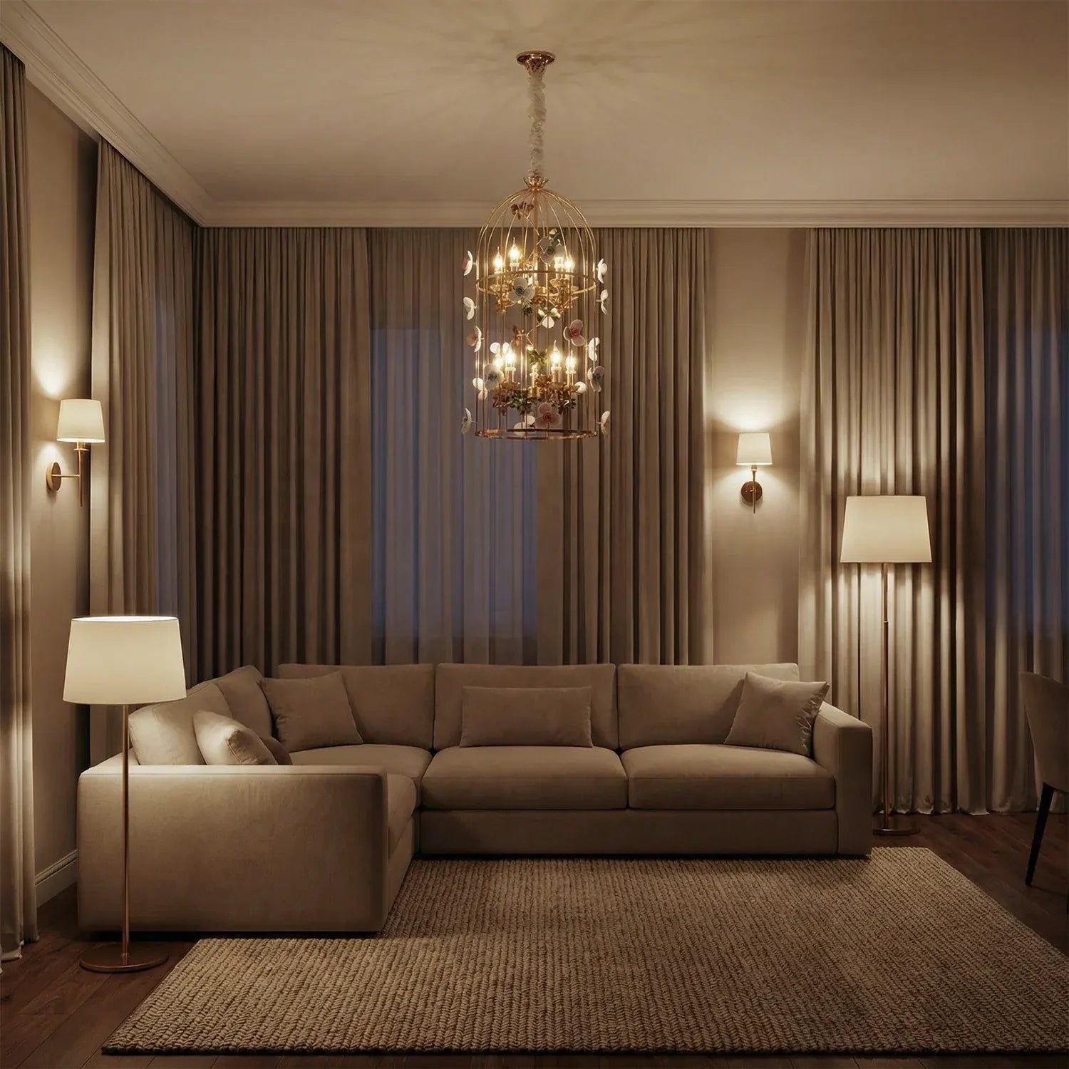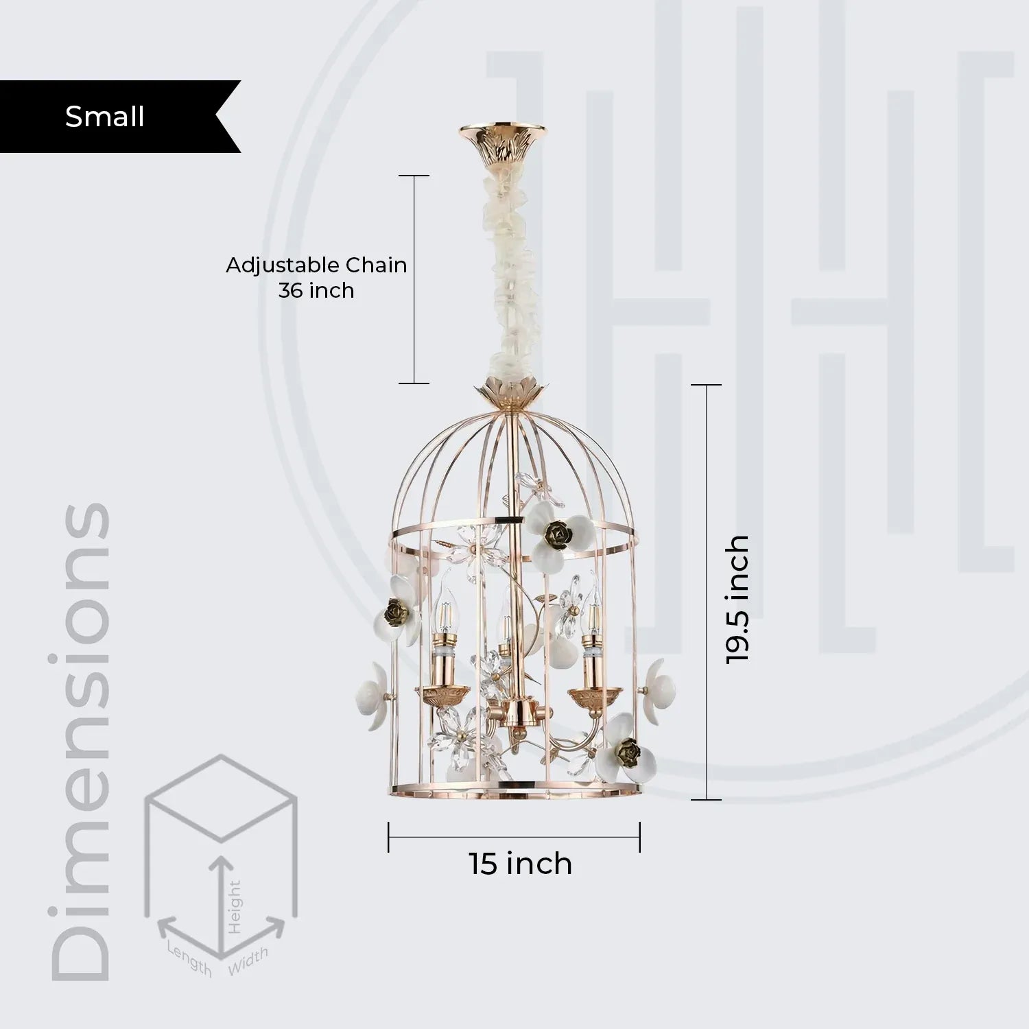 • Elegant birdcage-inspired silhouette that creates a grand statement in luxury interiors.