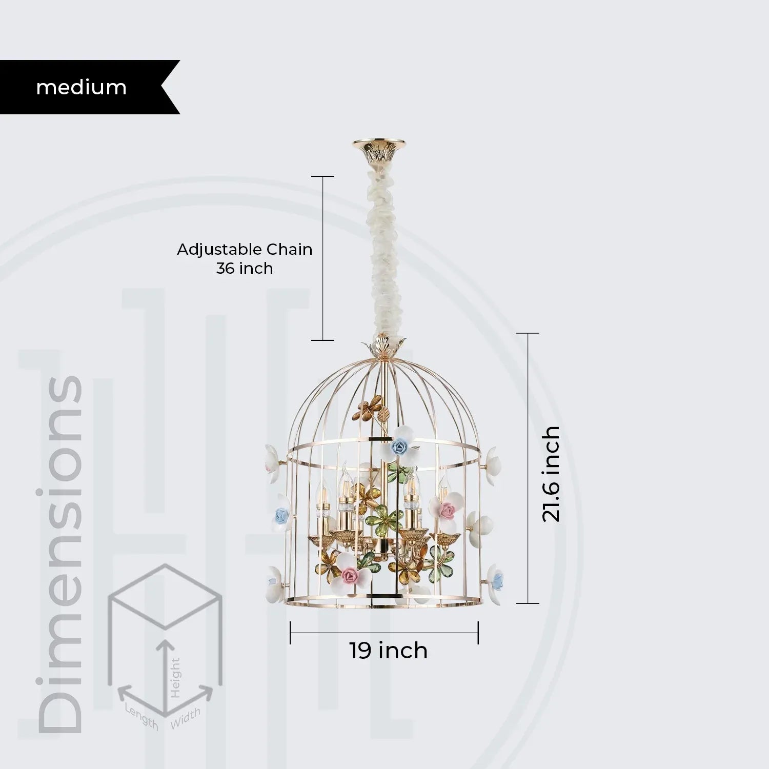• Adjustable 36-inch chain for customizable hanging height.