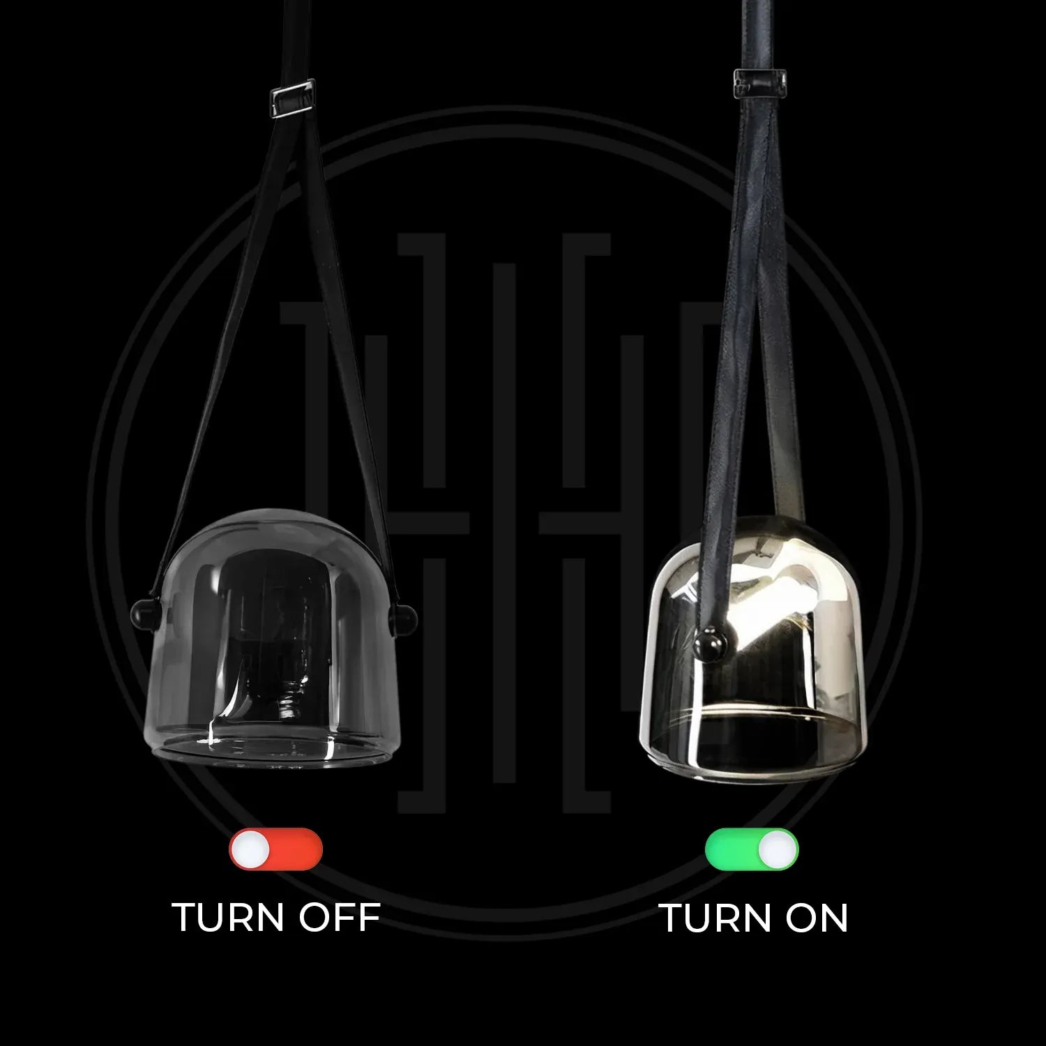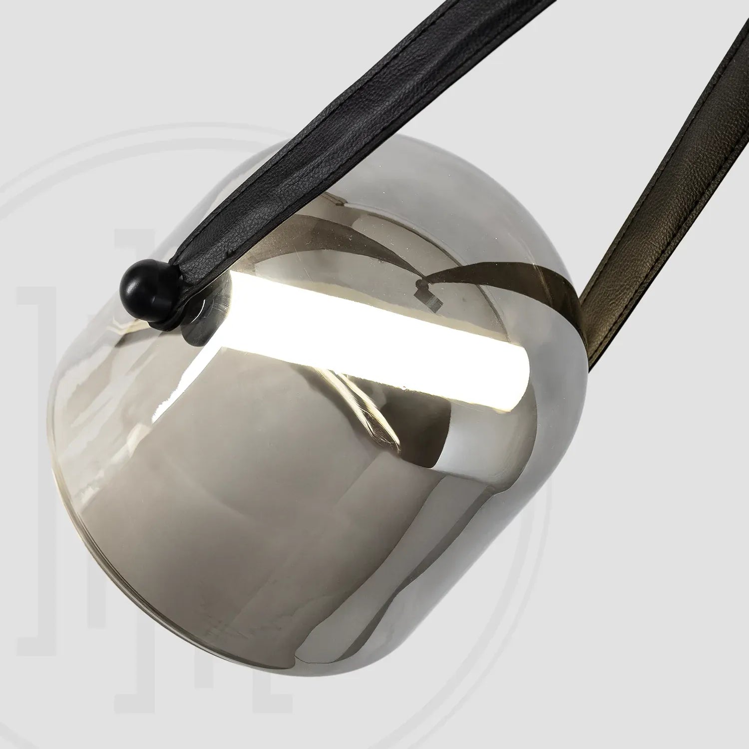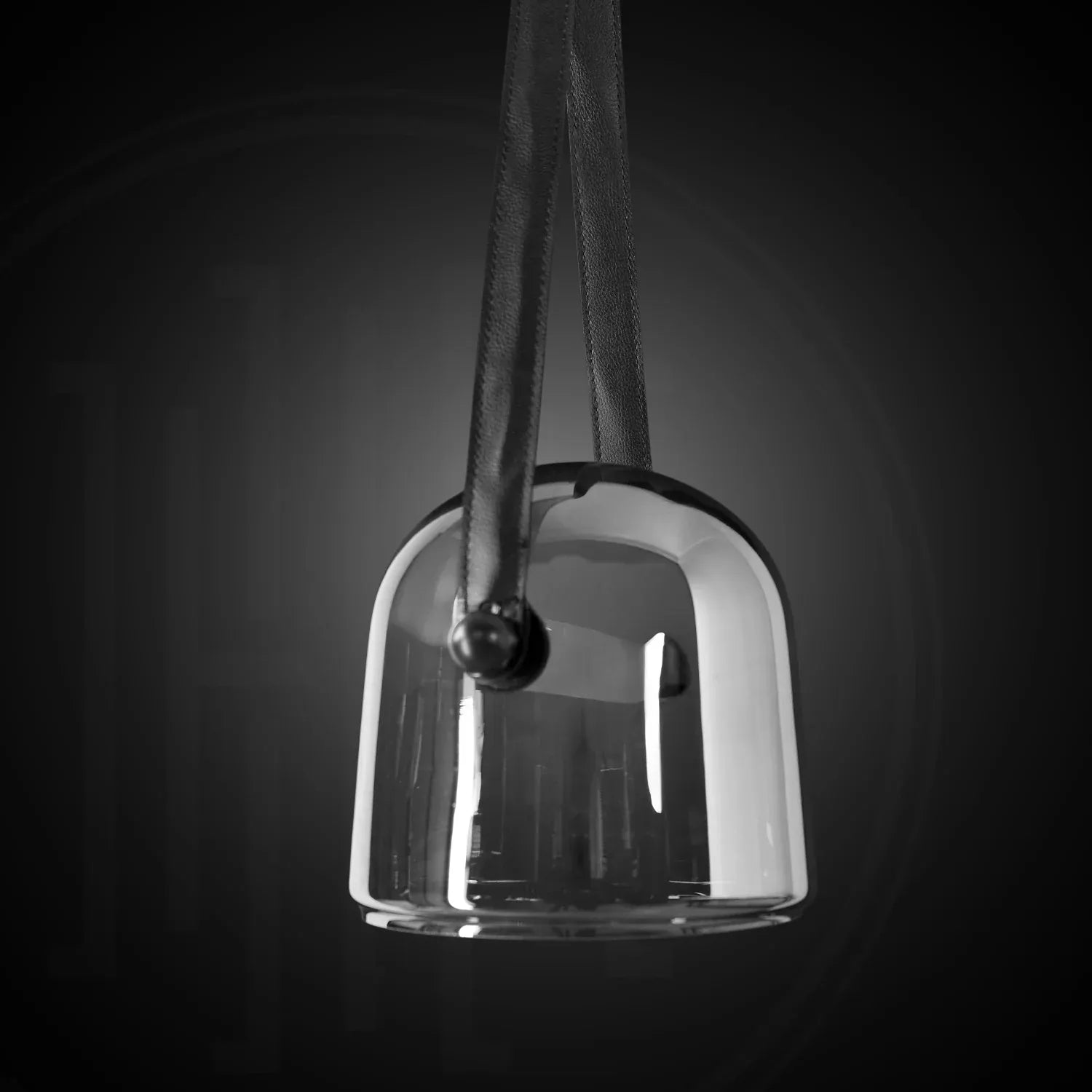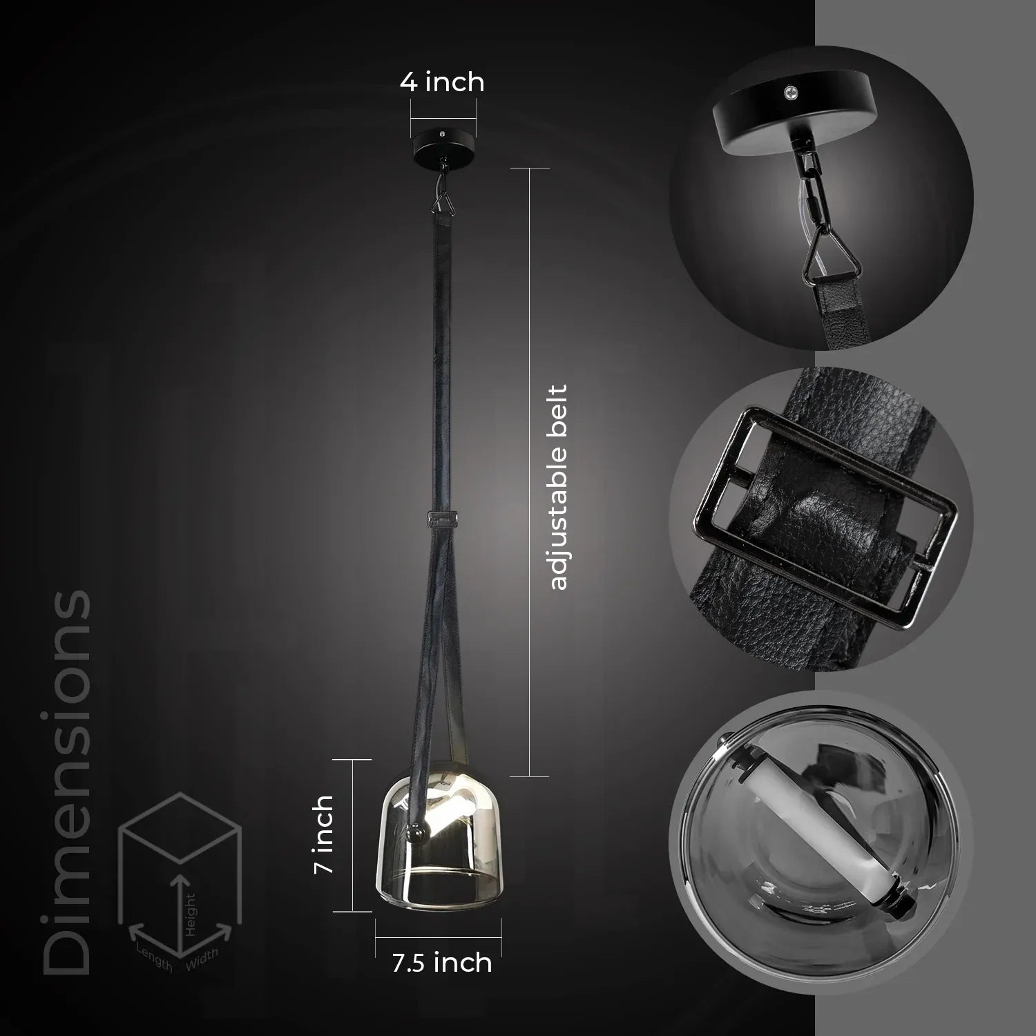 • Contemporary Design: Features a chic dome glass shade suspended by an adjustable leather belt for a unique, modern look.