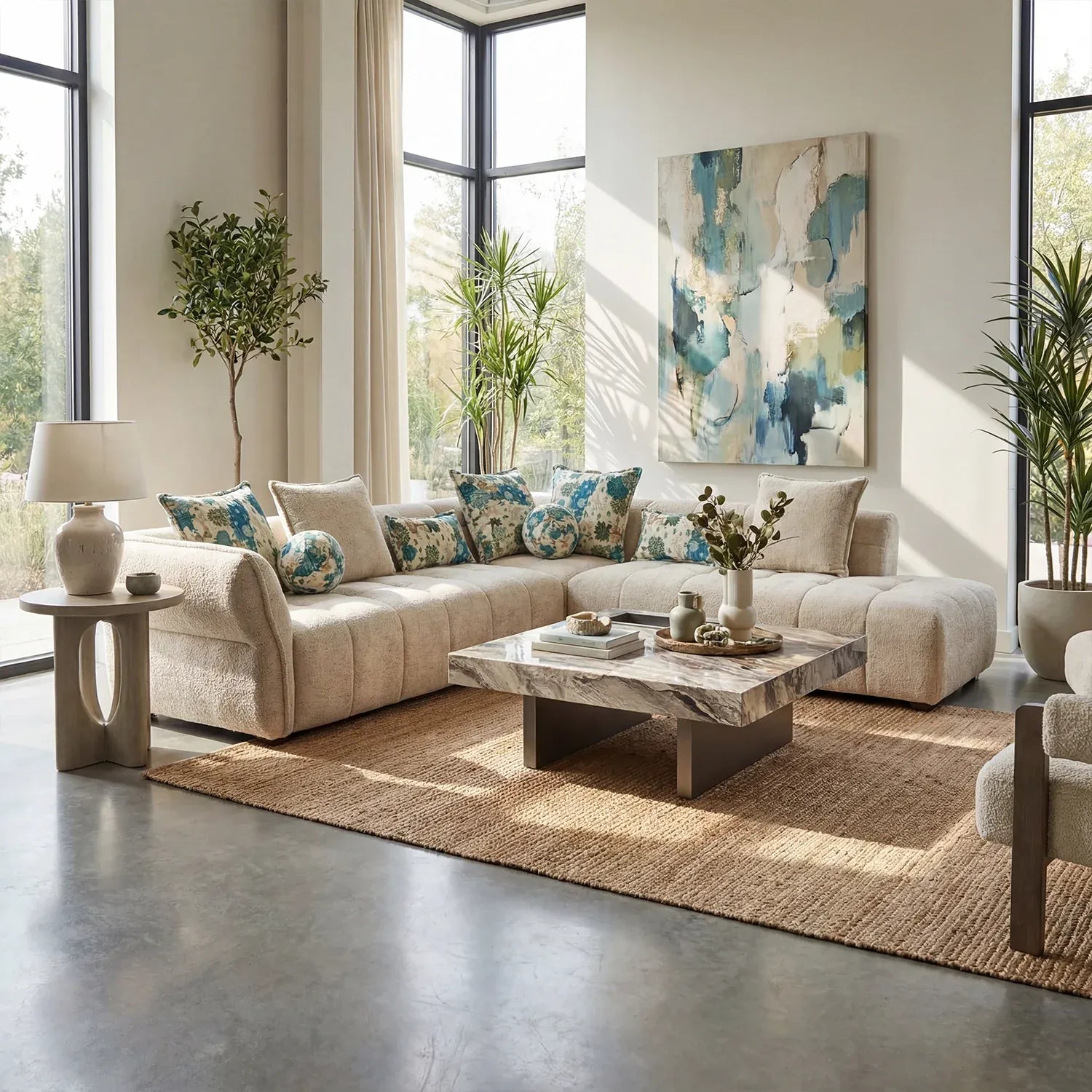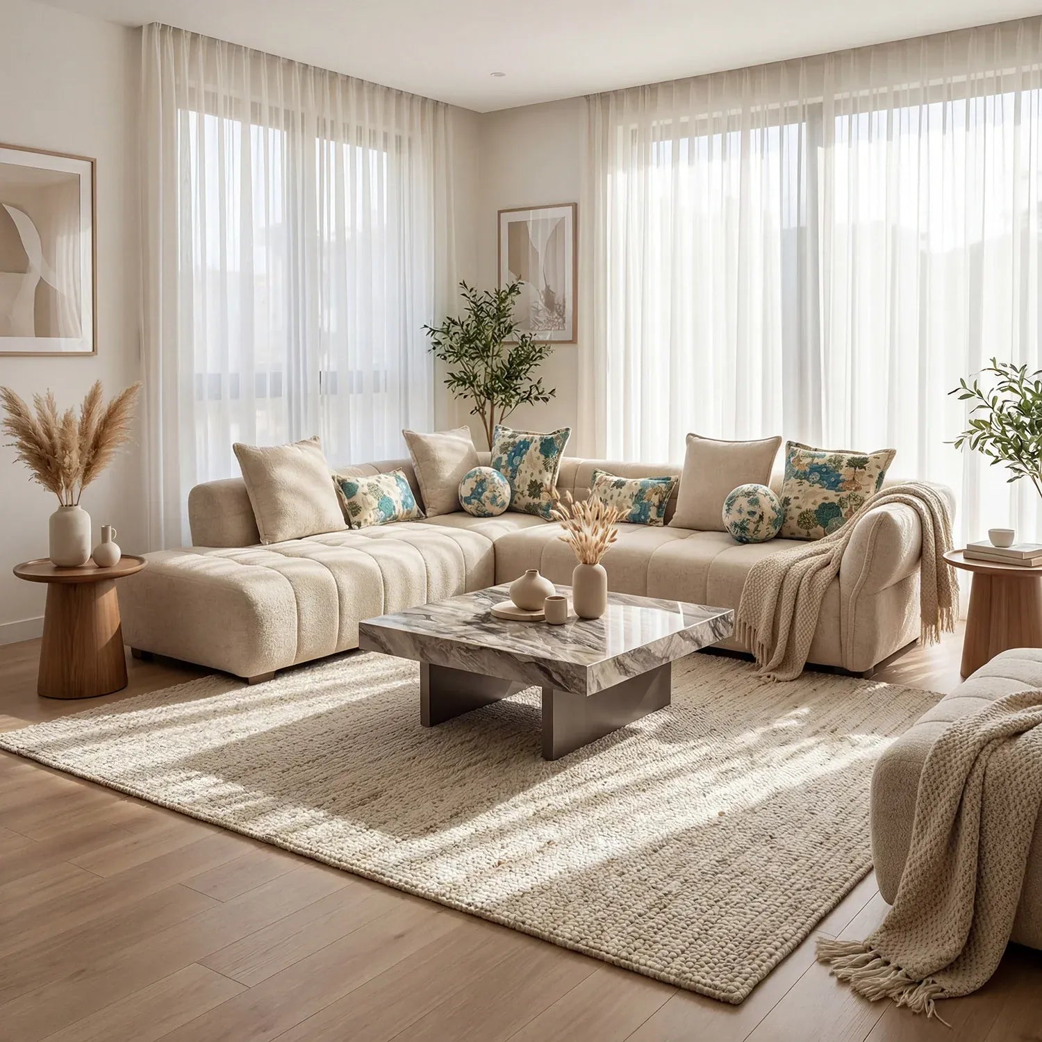 - Balanced Cushion Configuration: Includes 5 square cushions, 2 rectangular cushions, and 2 round accent cushions for layered comfort and refined styling.