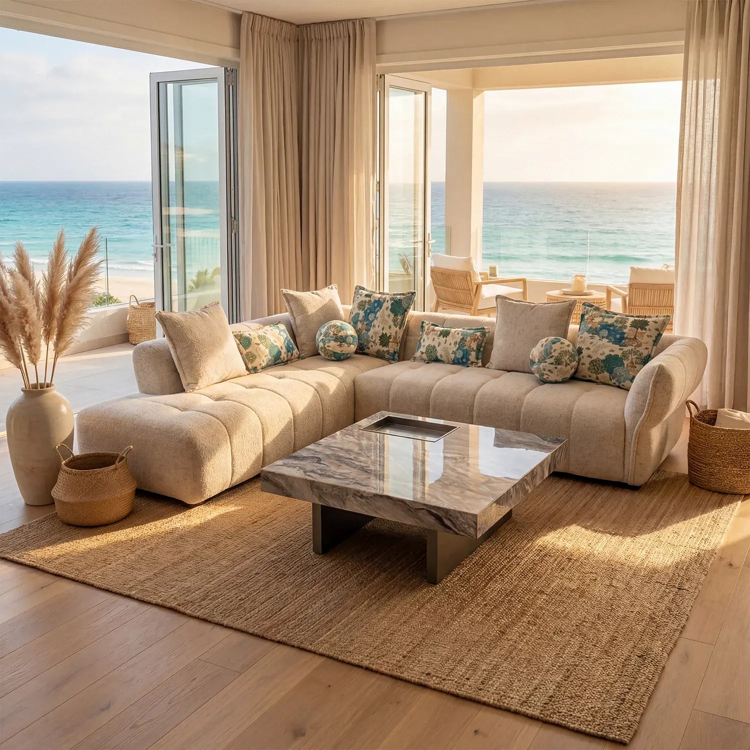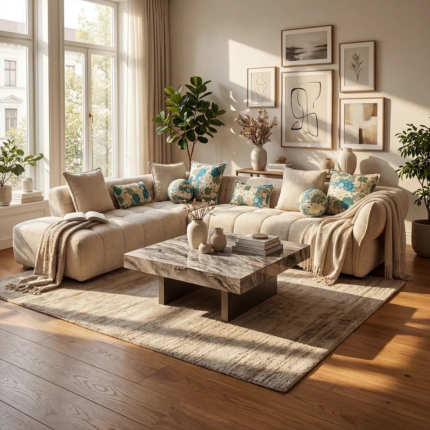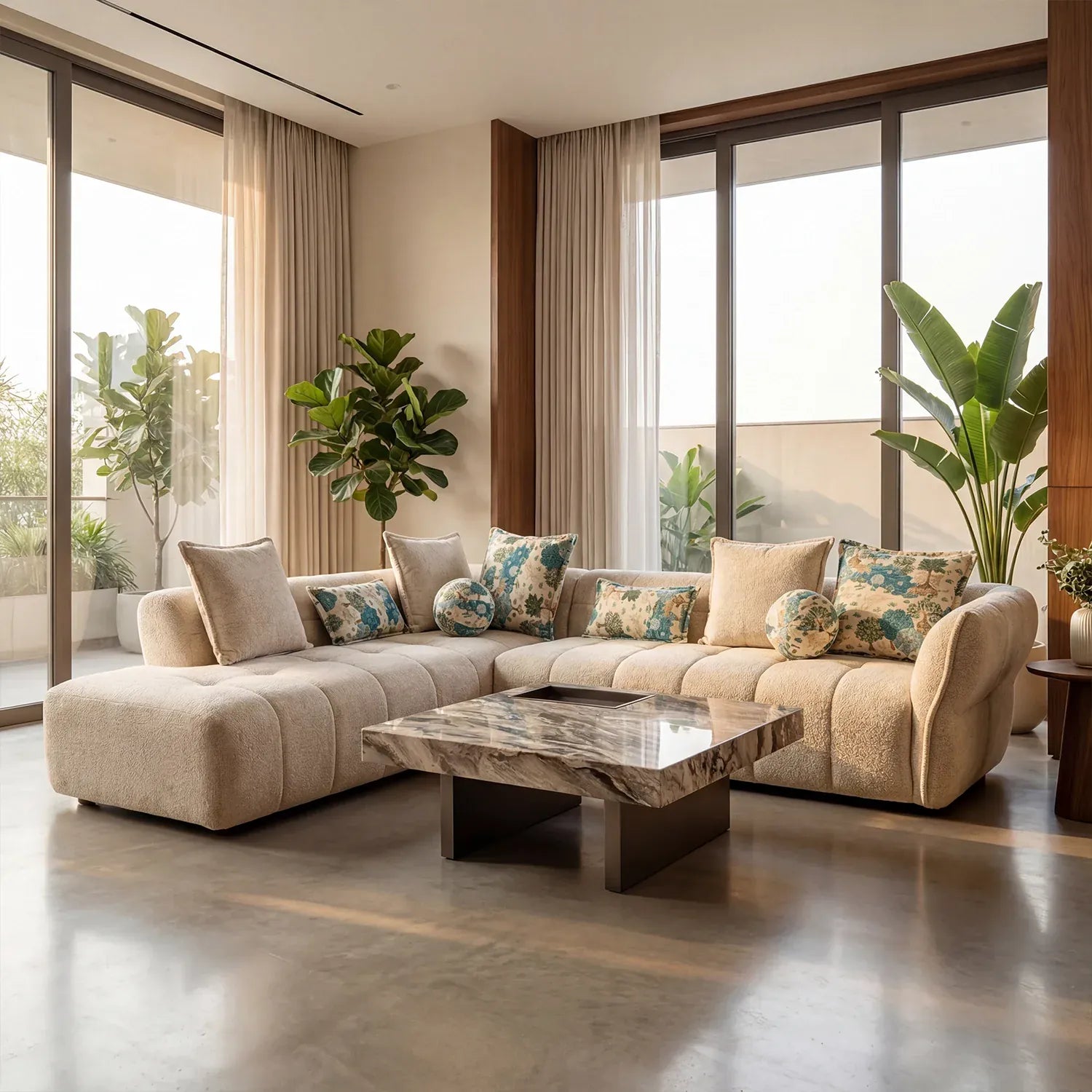 - Sofa Only (Center Table Not Included): Product includes only the sofa and cushions; accessories shown are for styling purposes.