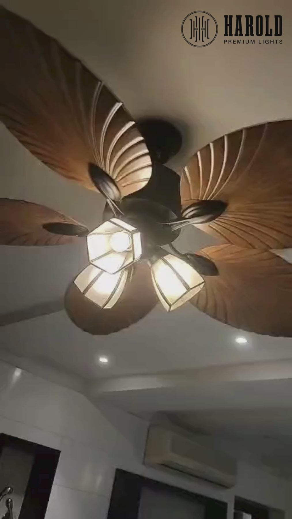 • 52” Wooden Blades – Handcrafted palm-shaped blades for powerful airflow with a tropical charm.