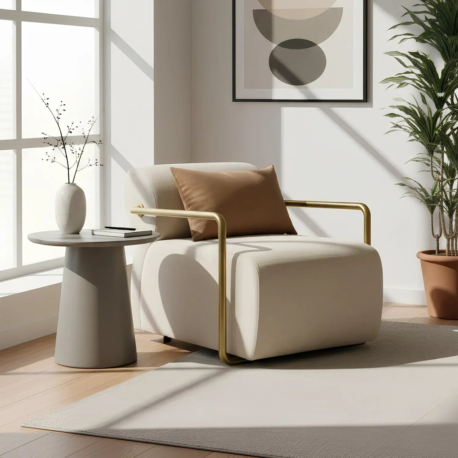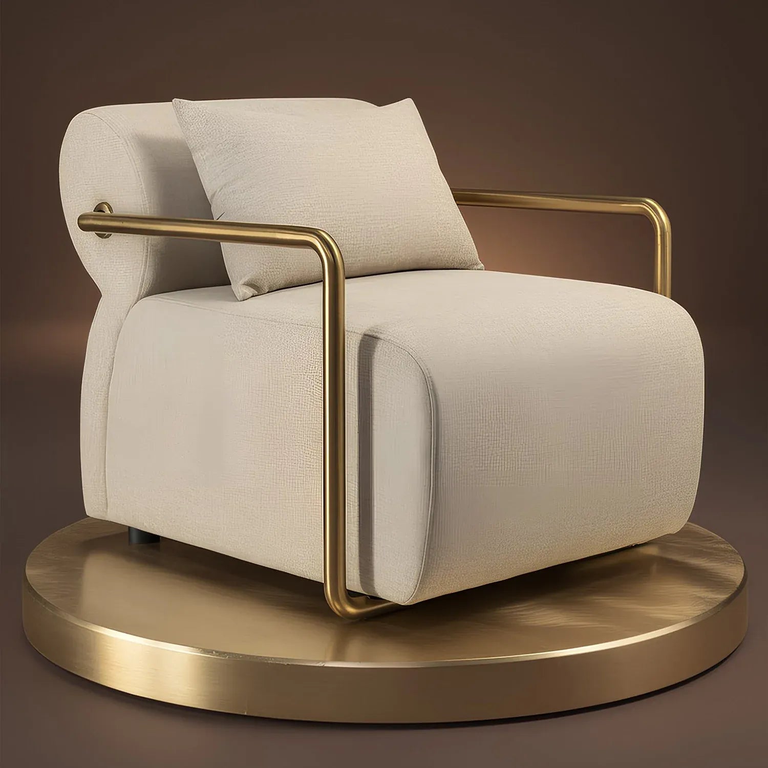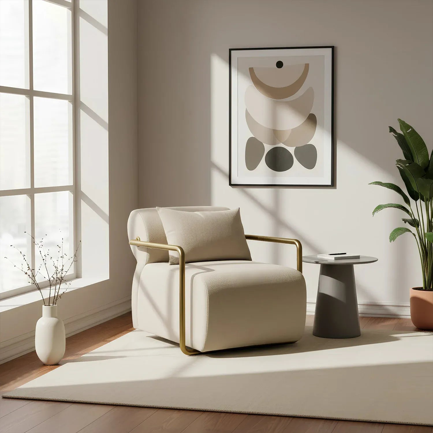 - Elegant Brass-Finished Arm Frame – Sleek metal arm detailing with a refined brass finish adds a touch of understated luxury and architectural appeal.