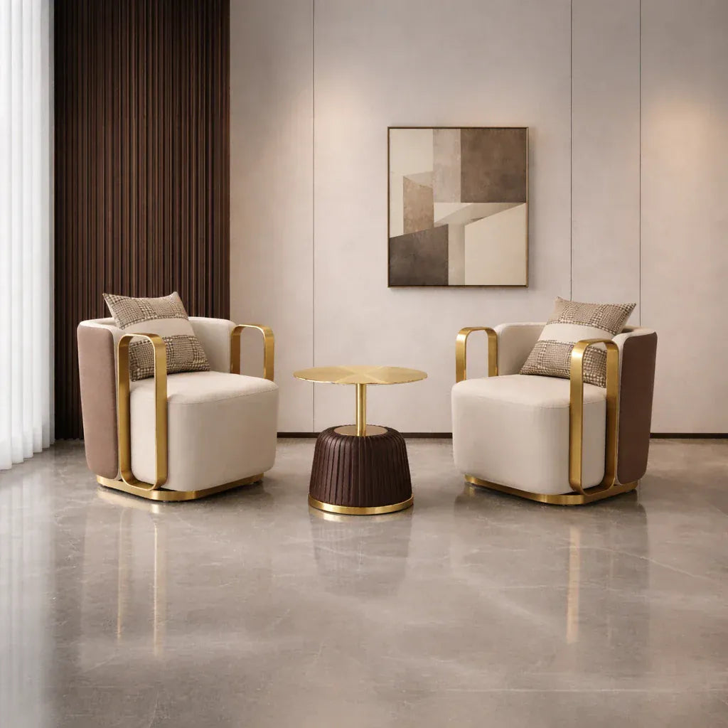 - Elegant Metal Arm Accents – Sleek metallic arm detailing adds a touch of sophistication while reinforcing structural strength.