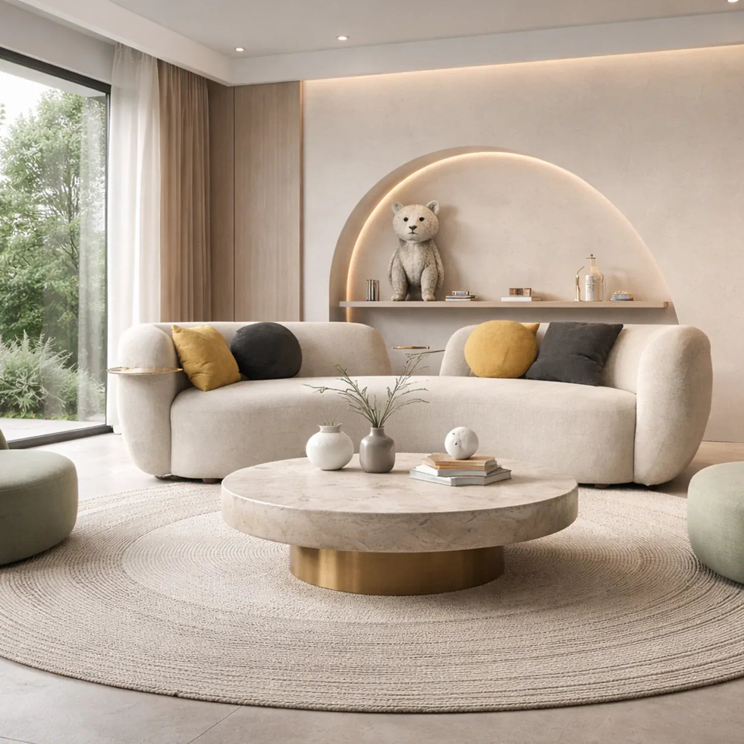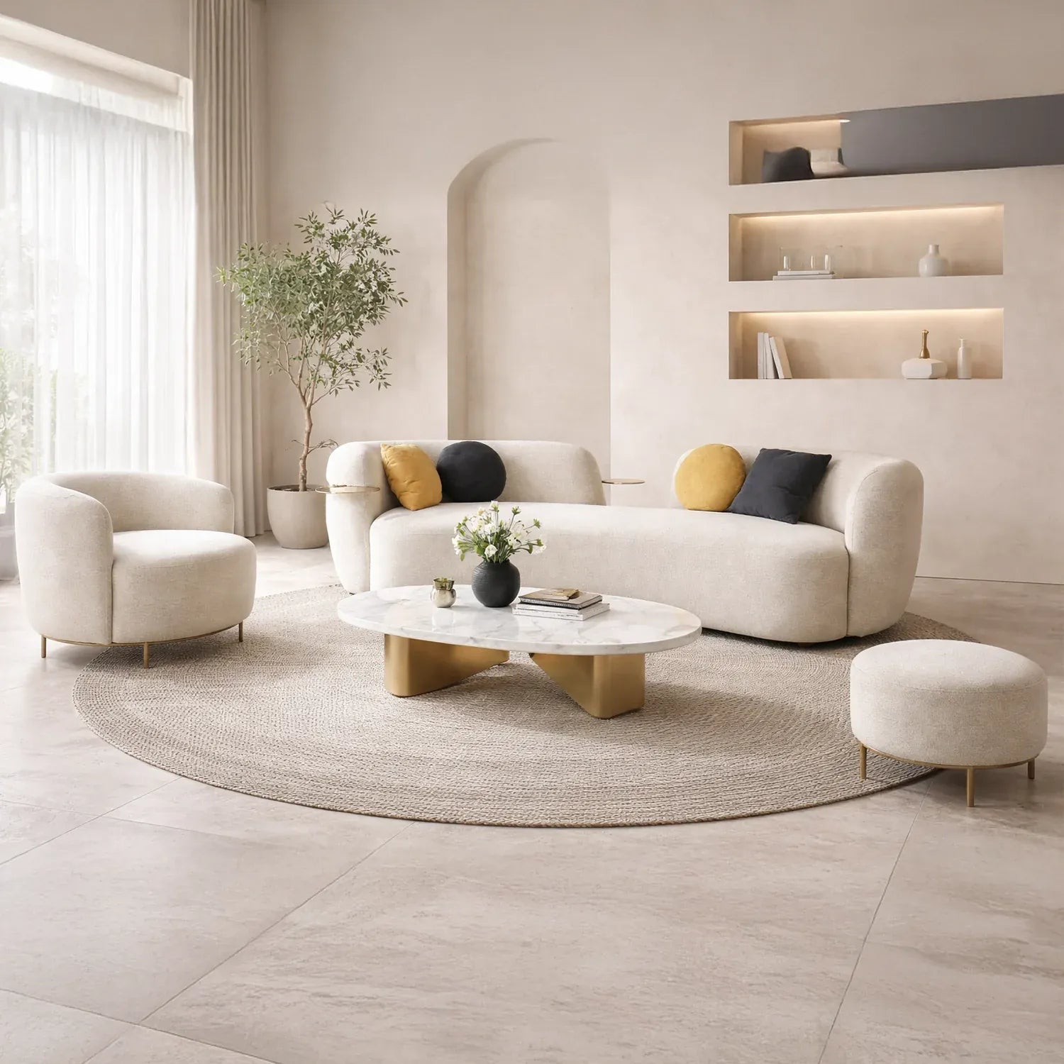 - Graceful Curved Silhouette: A fluid, arc-shaped form that acts as a sculptural centerpiece while encouraging relaxed, conversational seating.