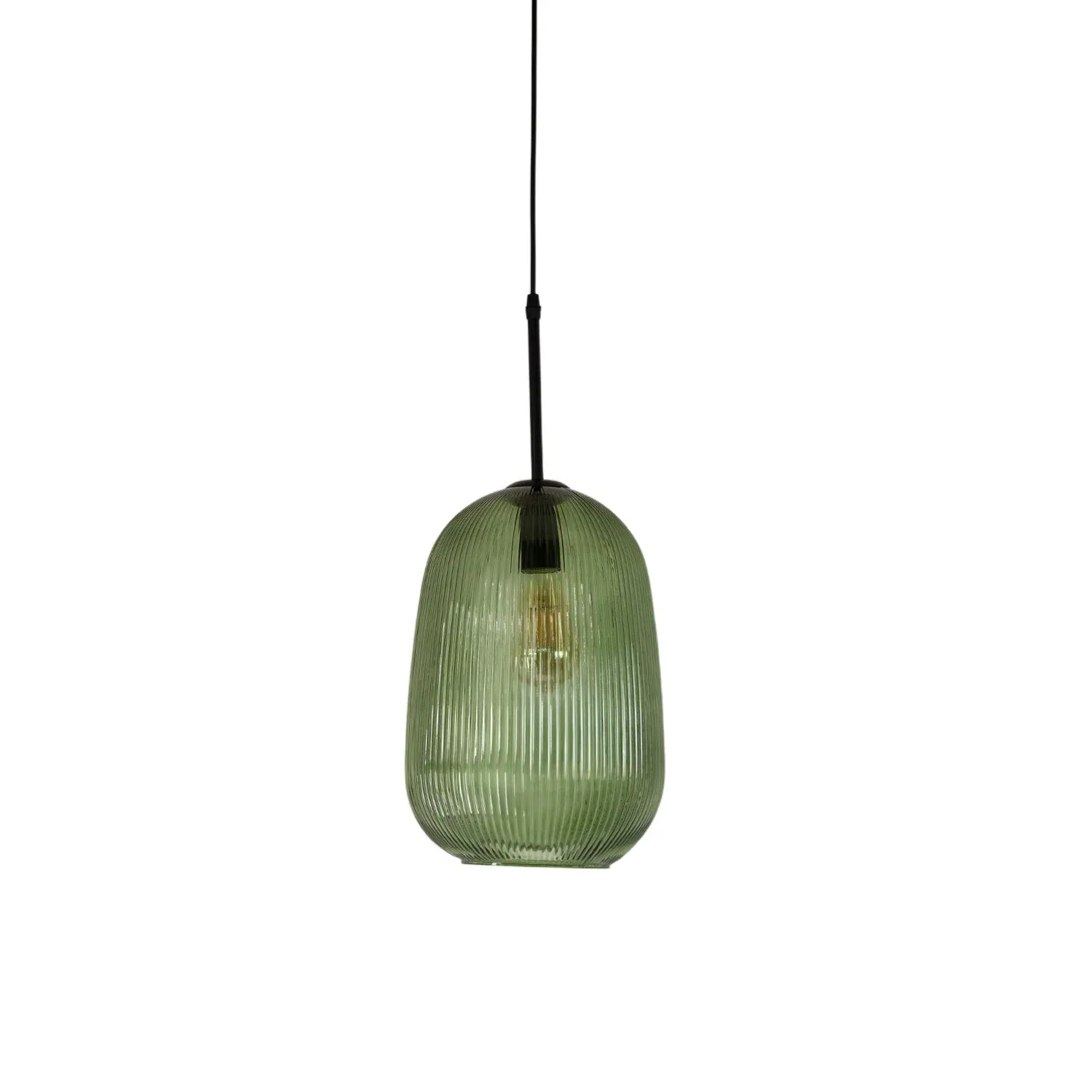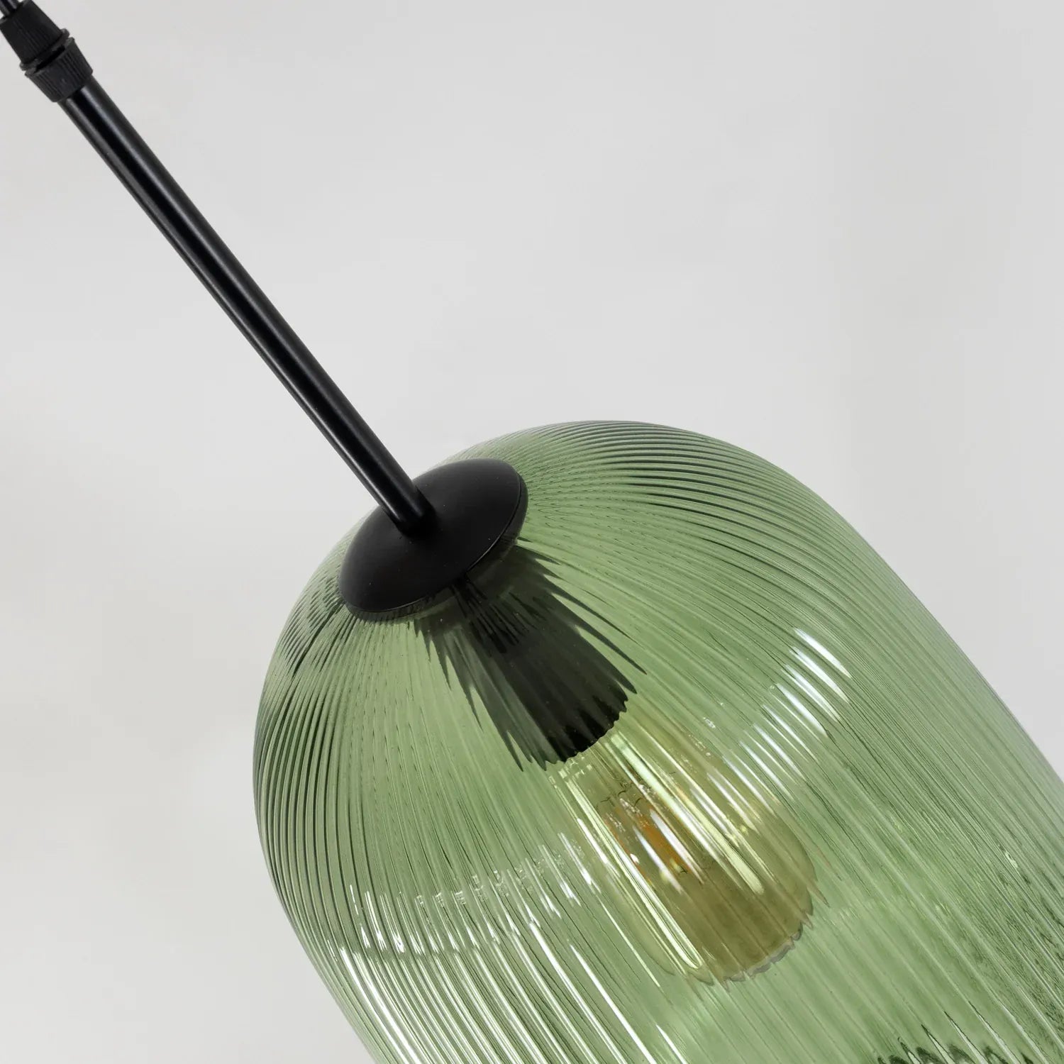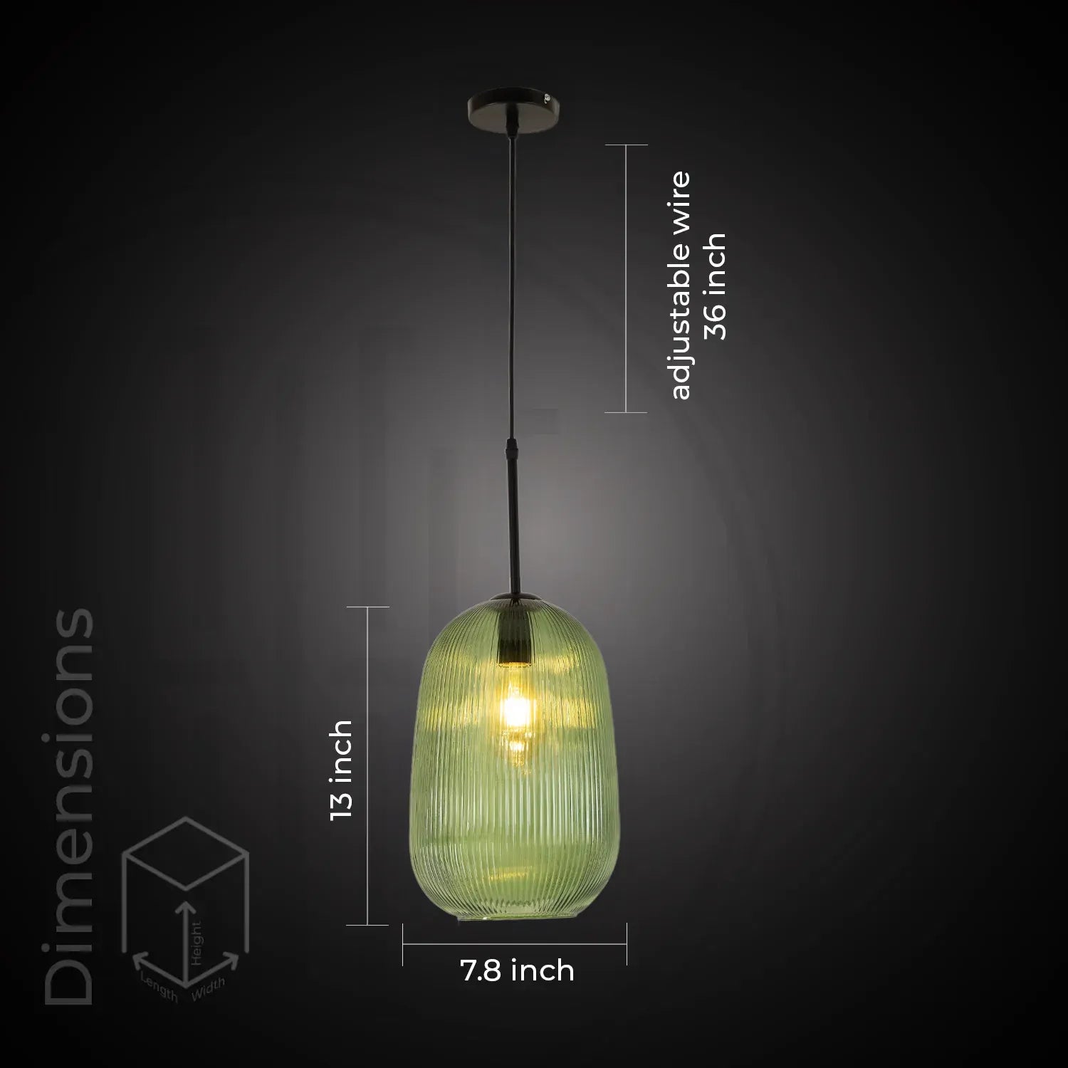 • Elegant olive green hue with vertical ribbed detailing that adds a soft ripple effect to the light