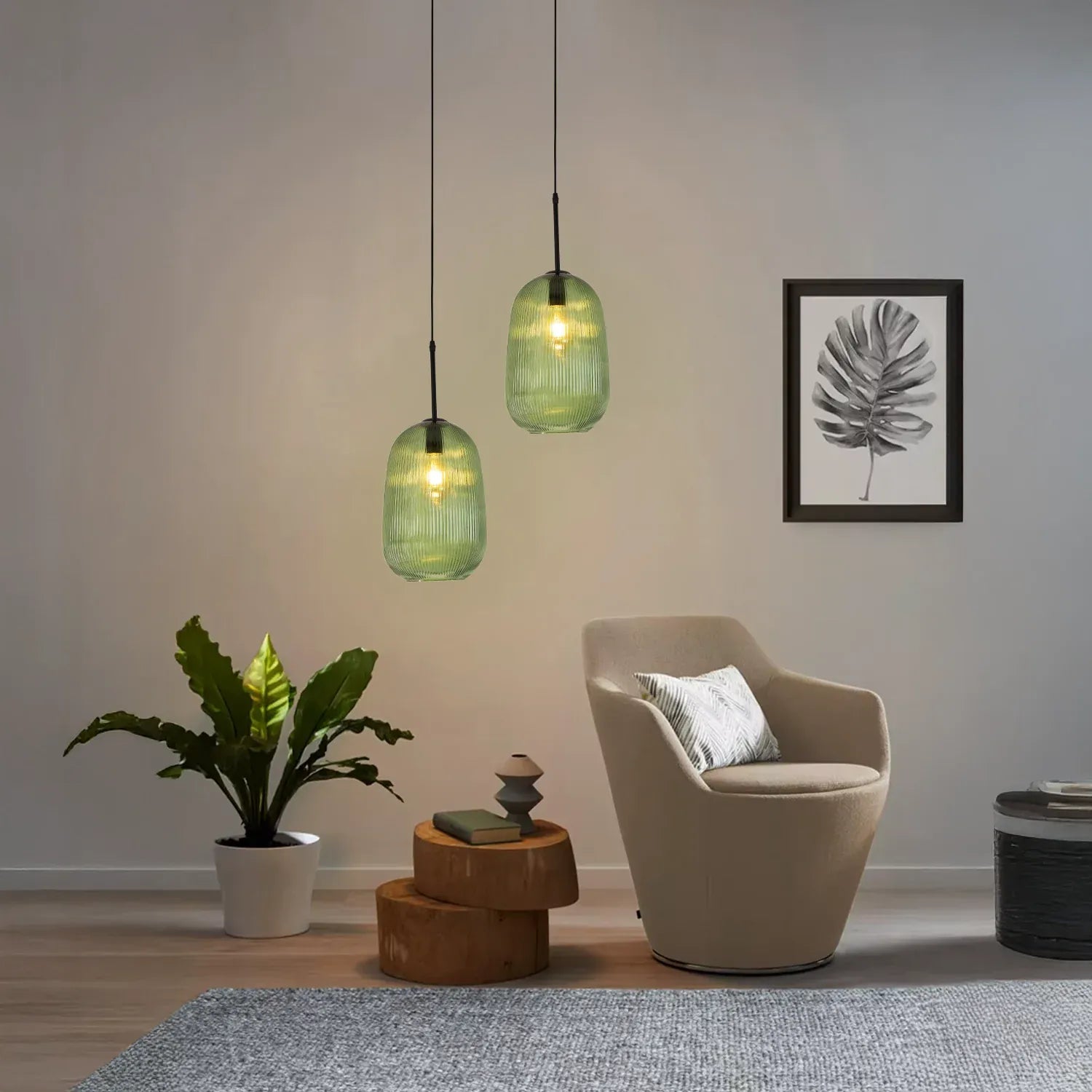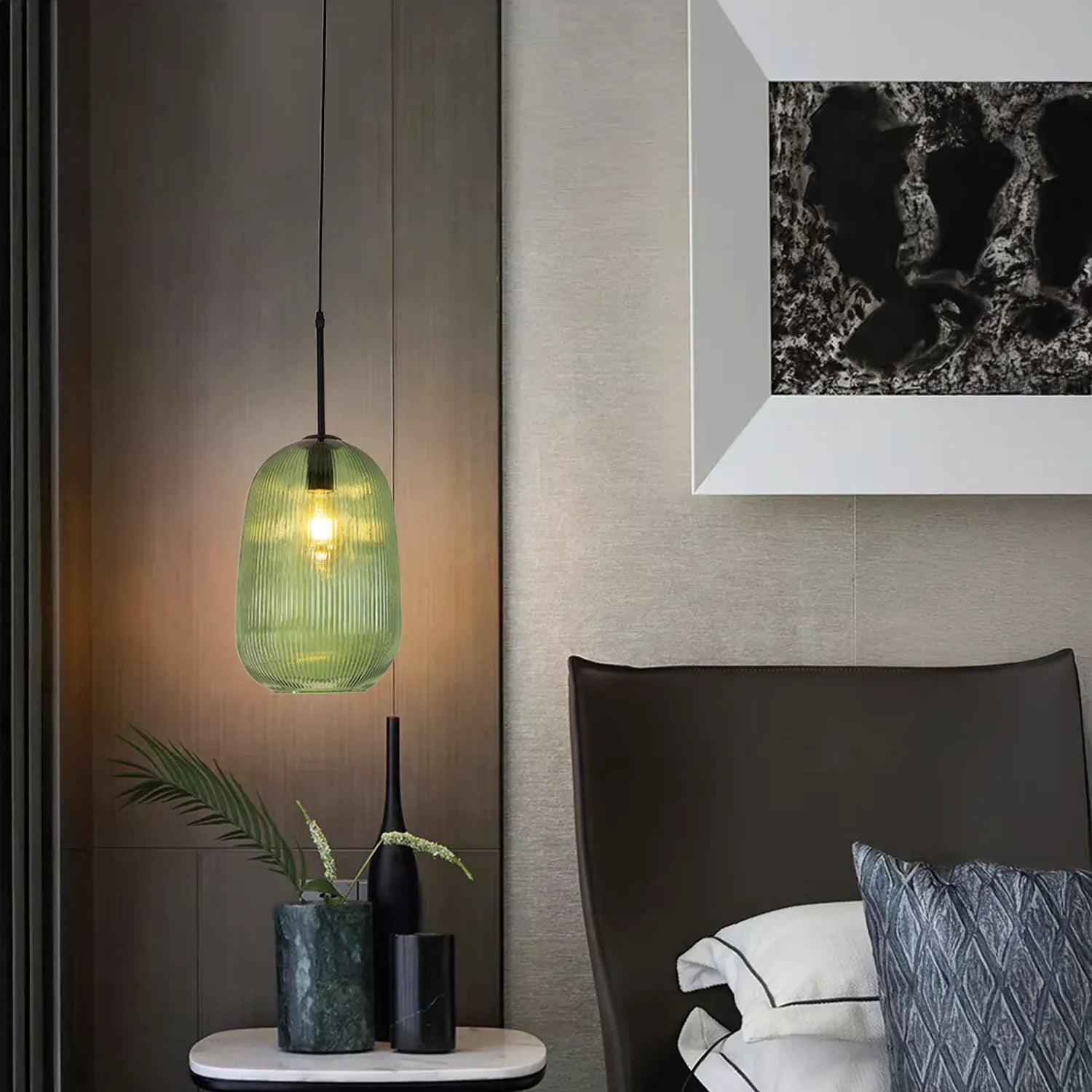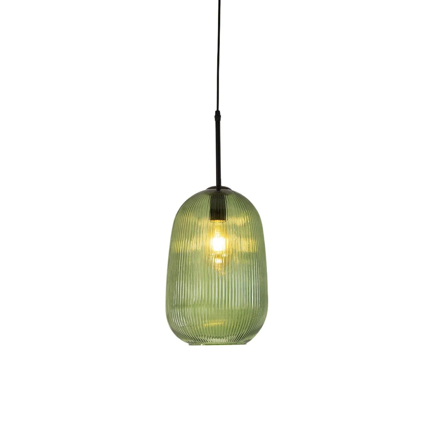 • Elegant olive green hue with vertical ribbed detailing that adds a soft ripple effect to the light