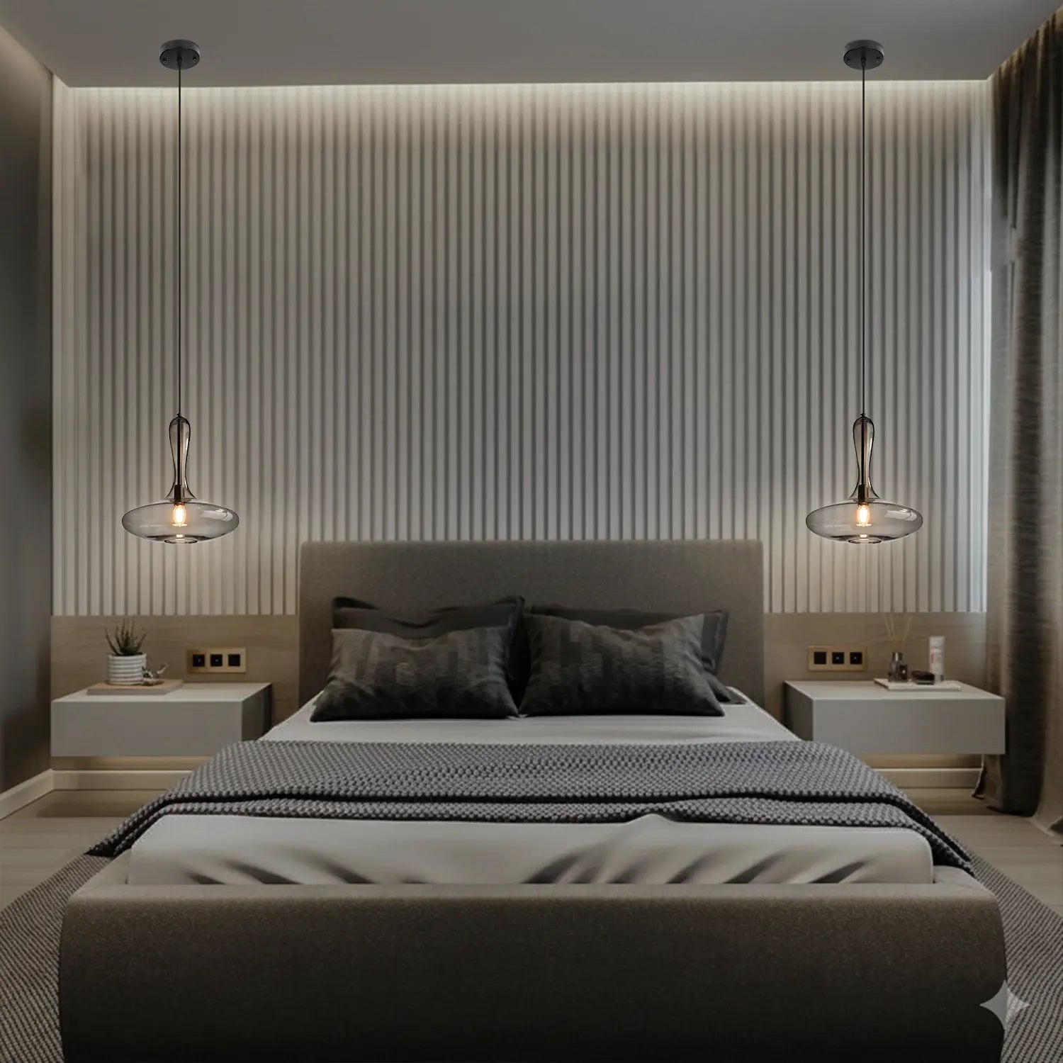 • Matte Black Ceiling Plate: Contrasts beautifully with the glass and enhances the pendant’s modern appeal.