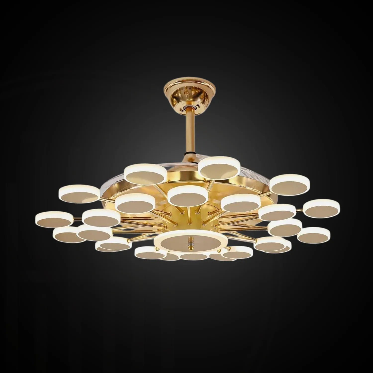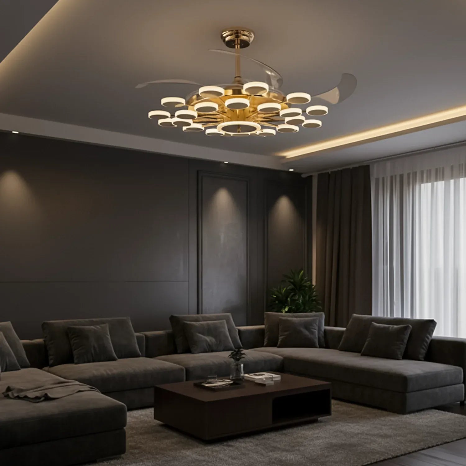 • Equipped with acrylic retractable blades that smoothly expand when the fan is ON and automatically fold in when OFF, maintaining a sleek chandelier look.