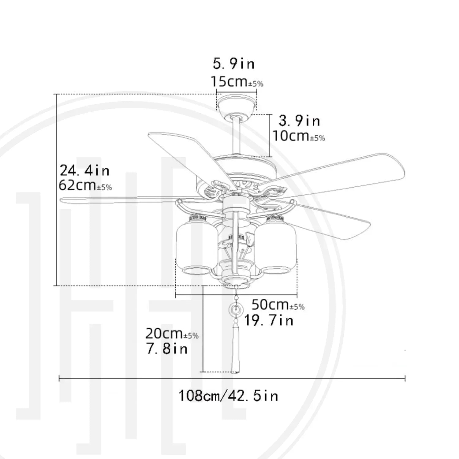 Fan Size 42.5 inch / 108 cm (Sweep)