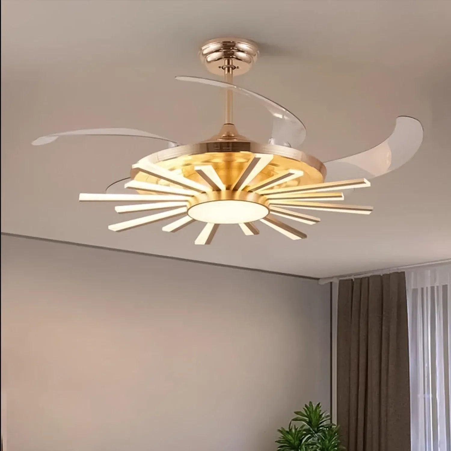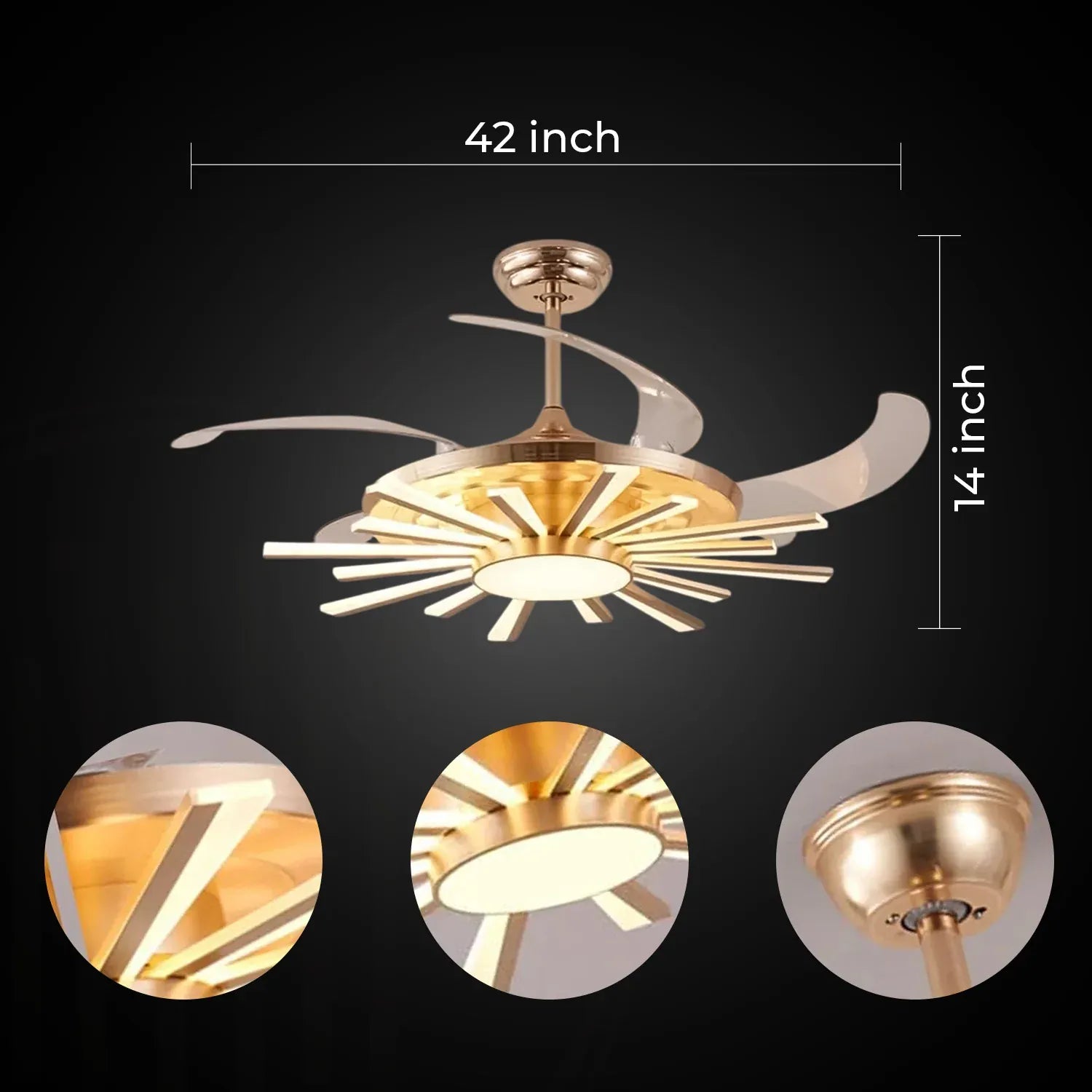 • Equipped with acrylic retractable blades that extend smoothly during use and automatically fold in when the fan is off, maintaining a sleek chandelier appearance.