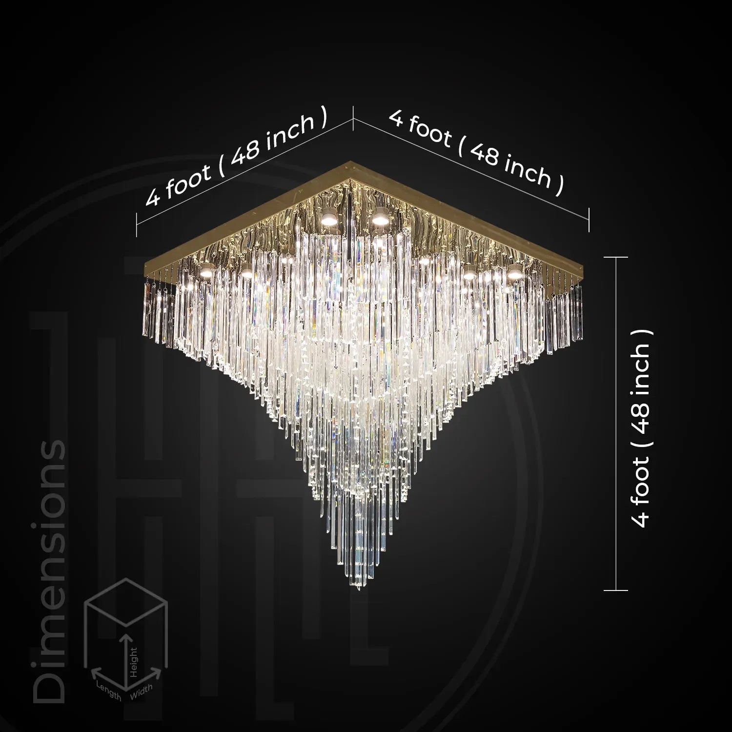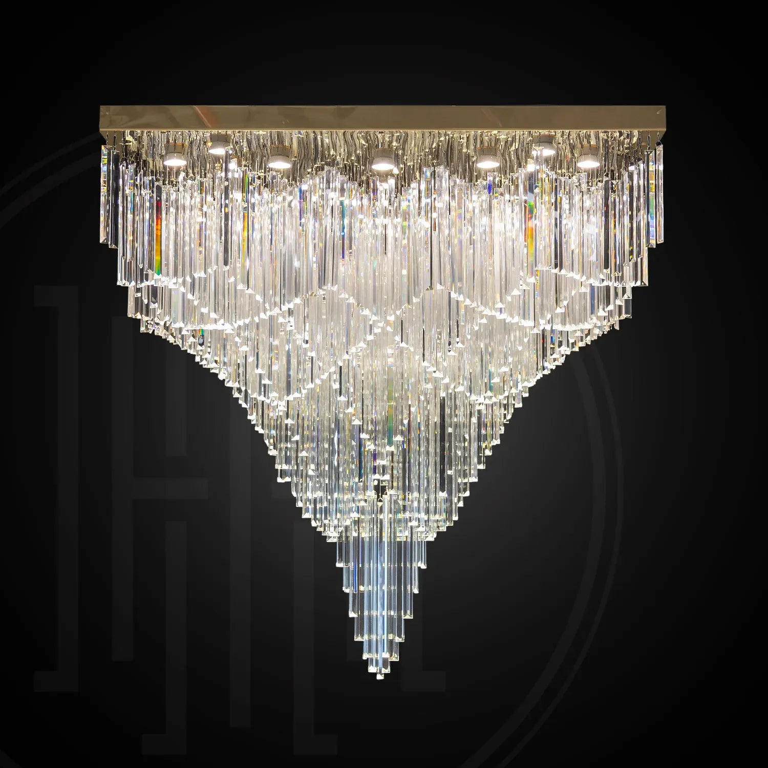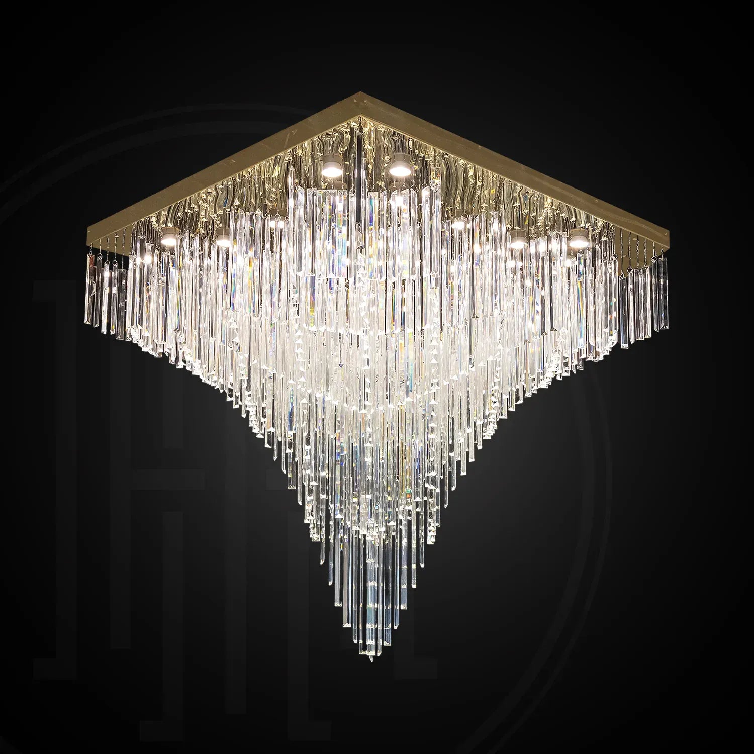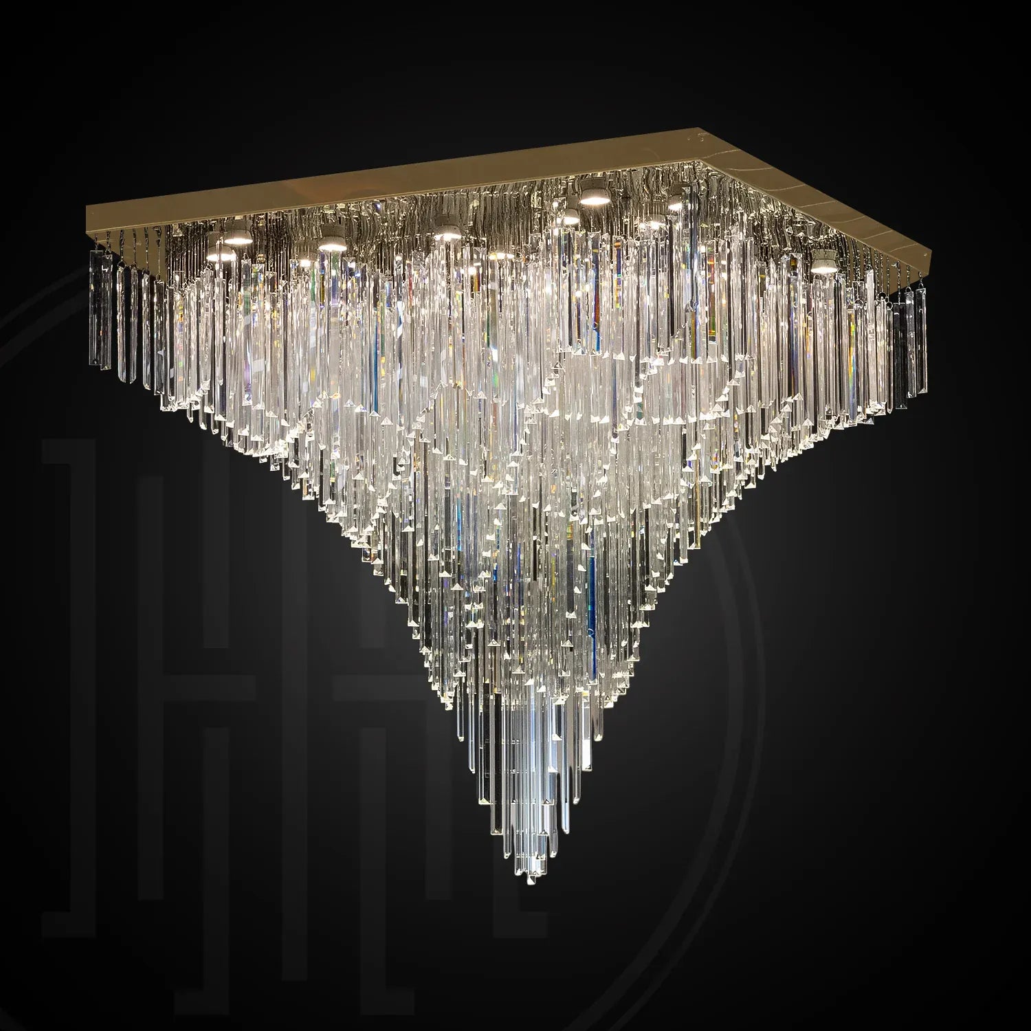 • Statement “Square Cascade” Design: A bold inverted-pyramid silhouette that creates a grand ceiling centerpiece for luxury interiors.