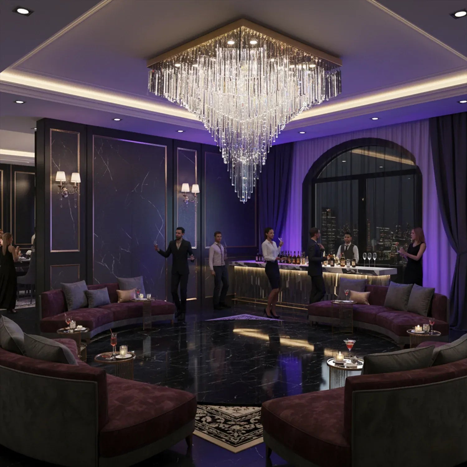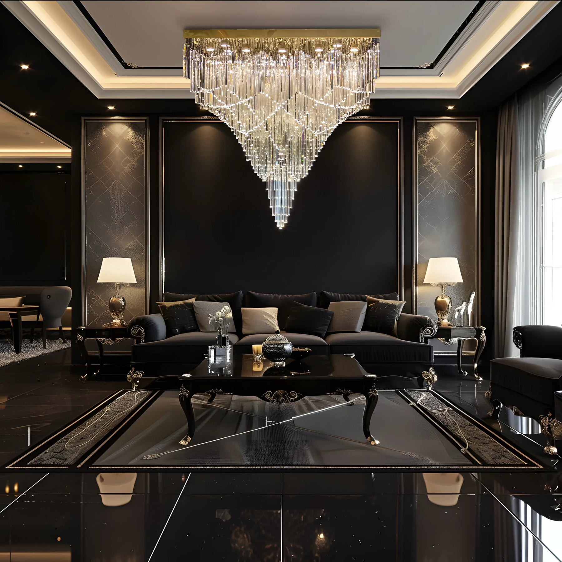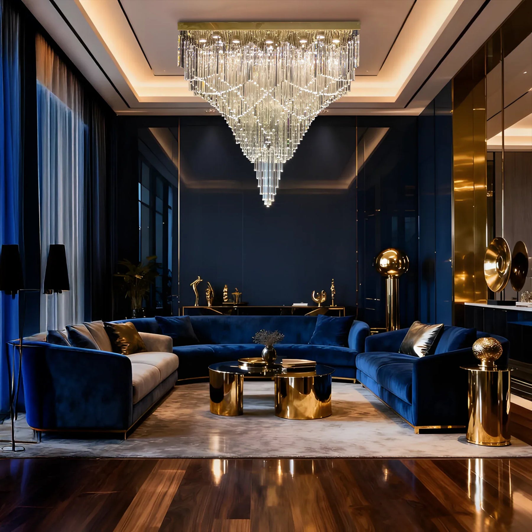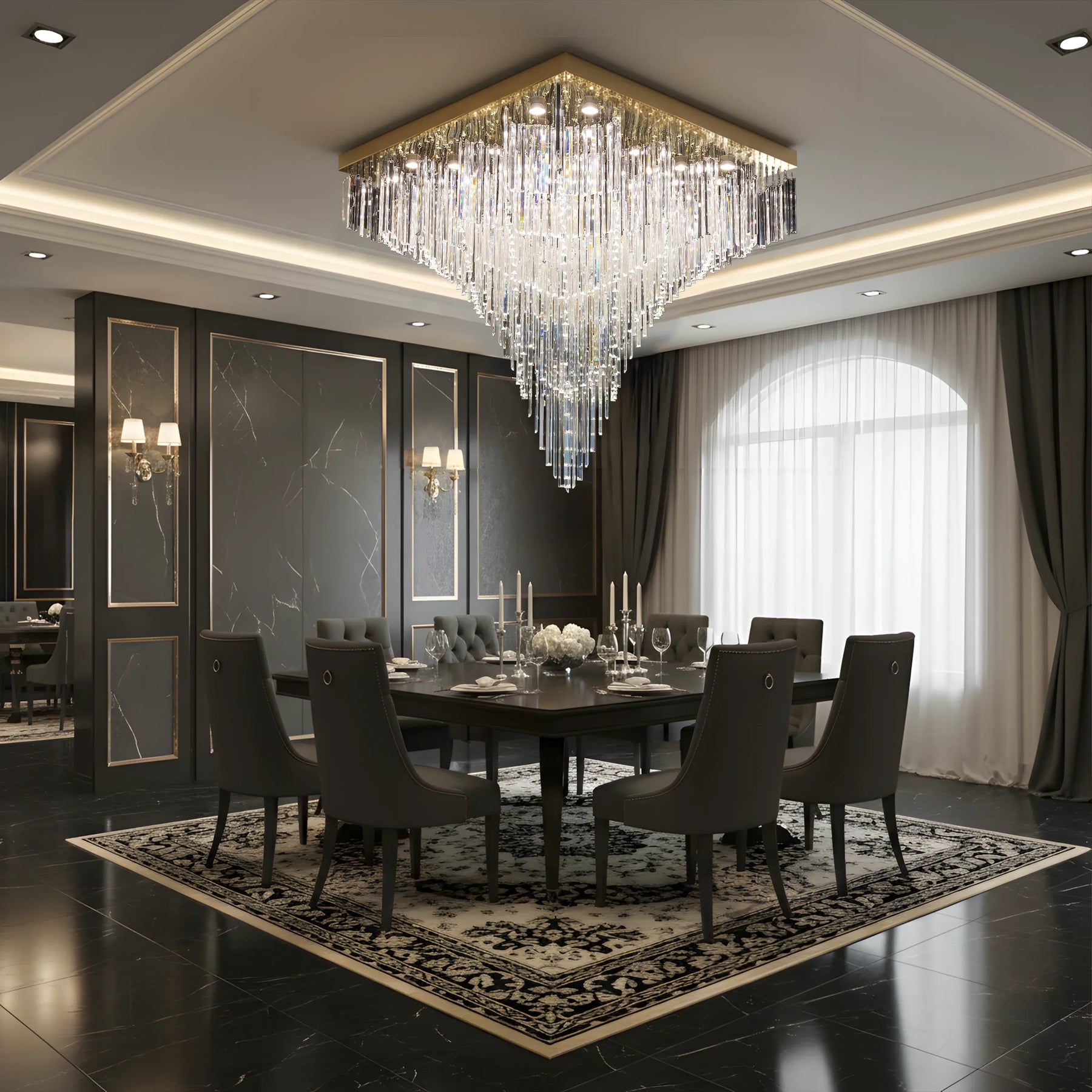 • Statement “Square Cascade” Design: A bold inverted-pyramid silhouette that creates a grand ceiling centerpiece for luxury interiors.