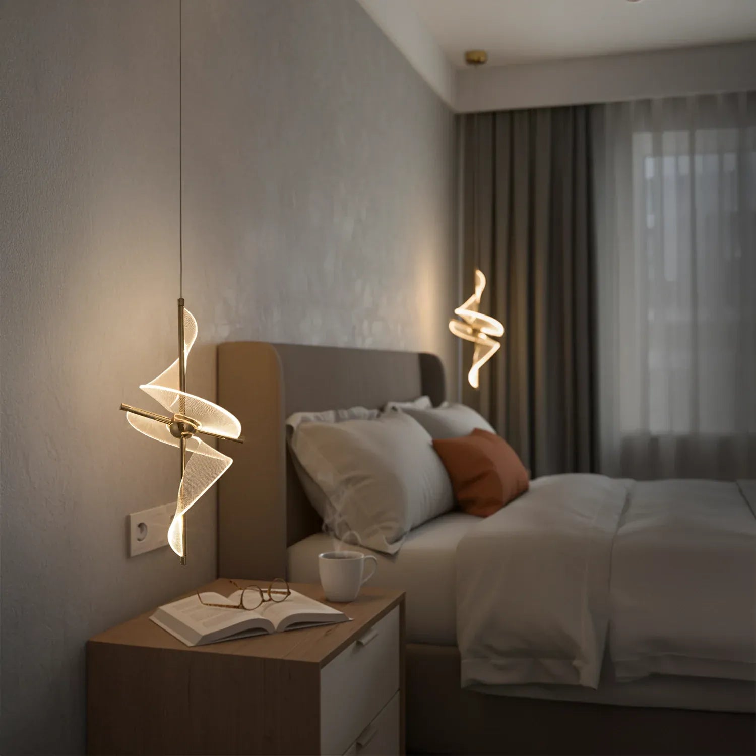 • Elegant twin-spiral design crafted from precision-cut acrylic glass for a mesmerizing lighting effect.